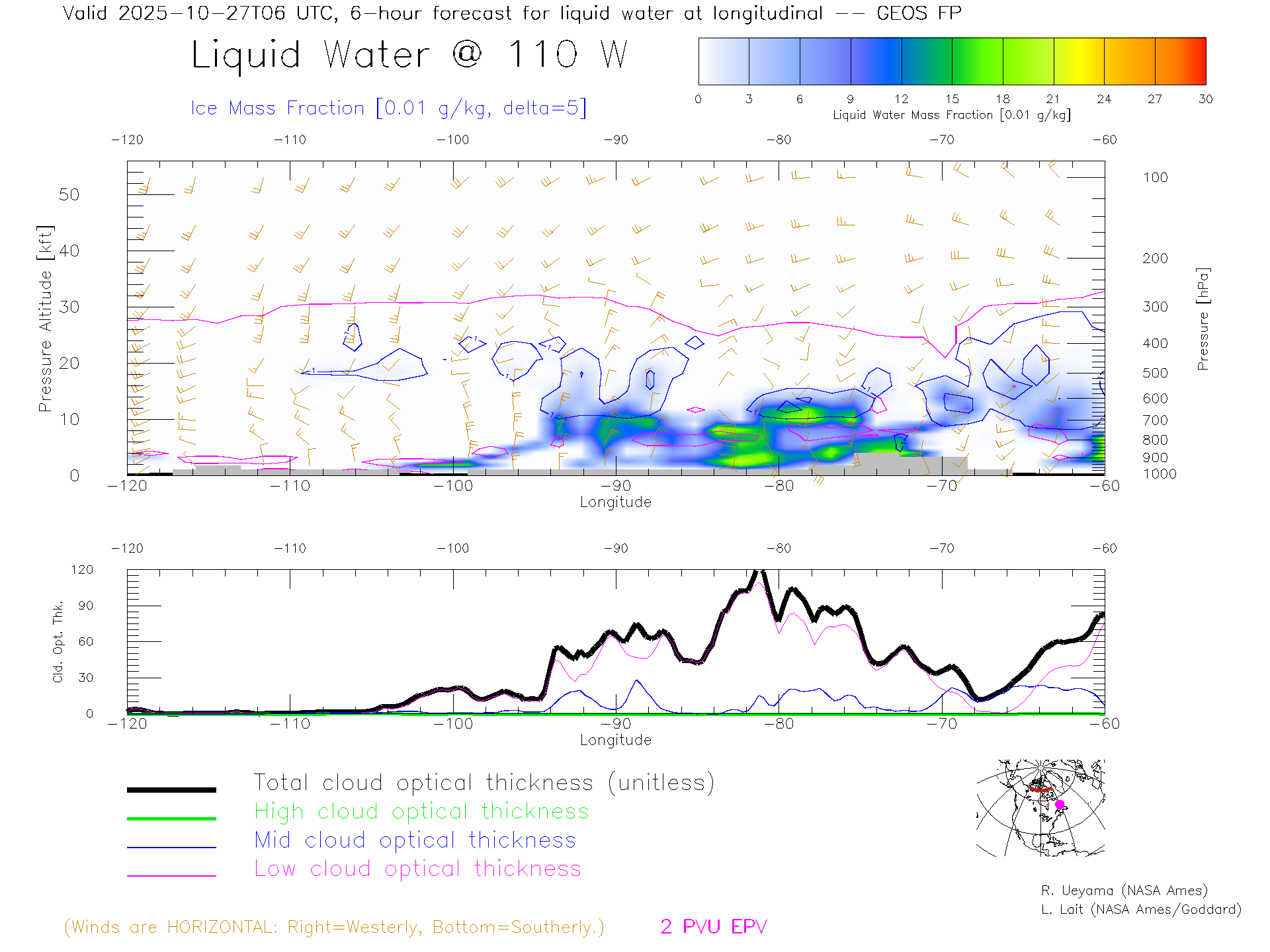 GEOS Forecast Cloud Water Content X-Section (70 N)