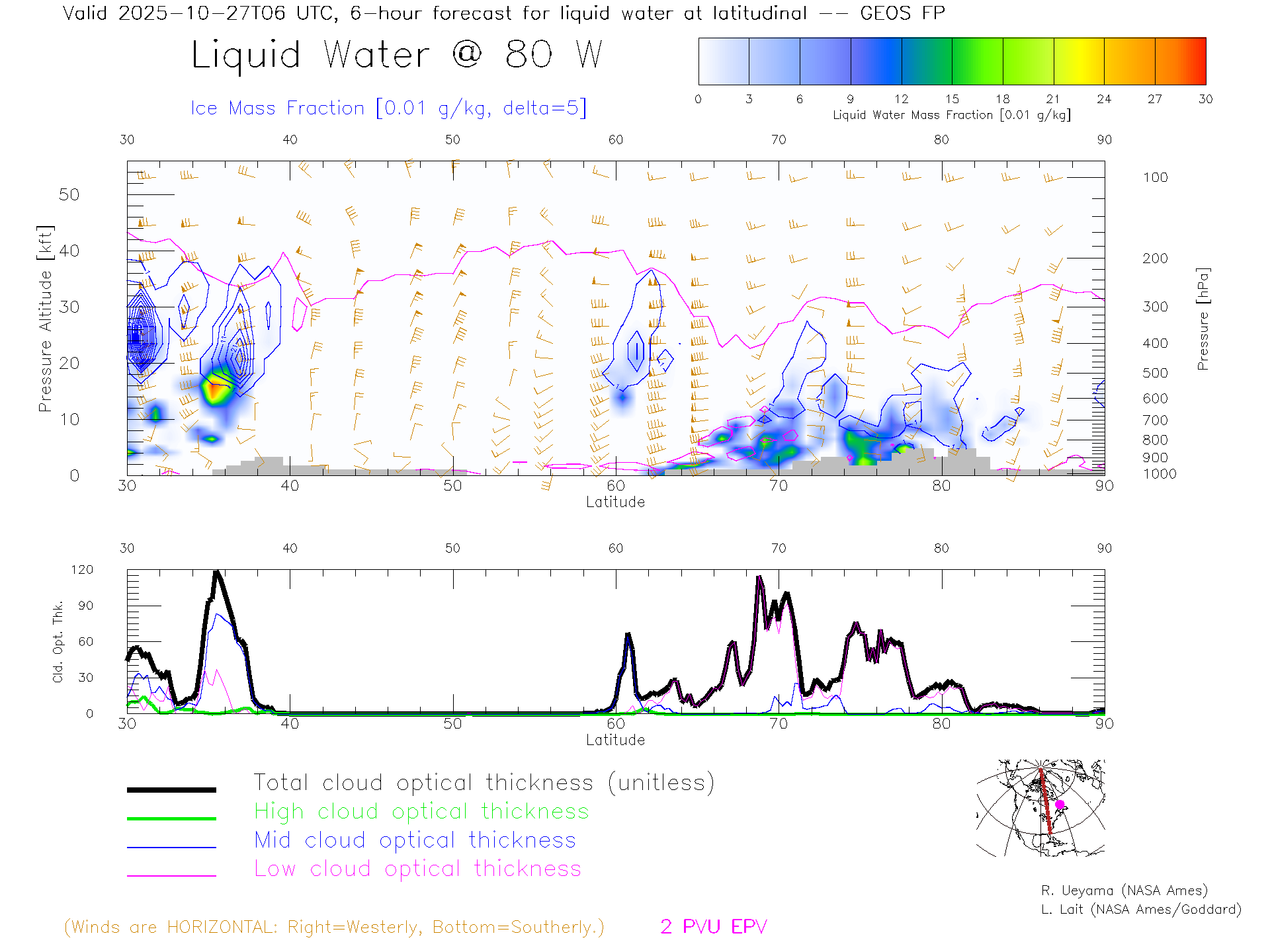 GEOS Forecast Cloud Water Content X-Section (80 W)