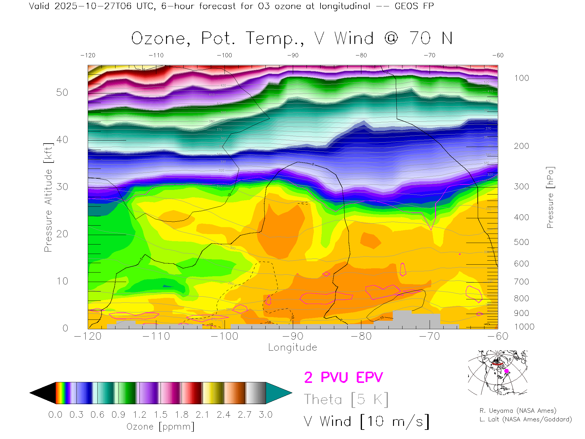 GEOS Forecast Ozone X-Section (70 N)