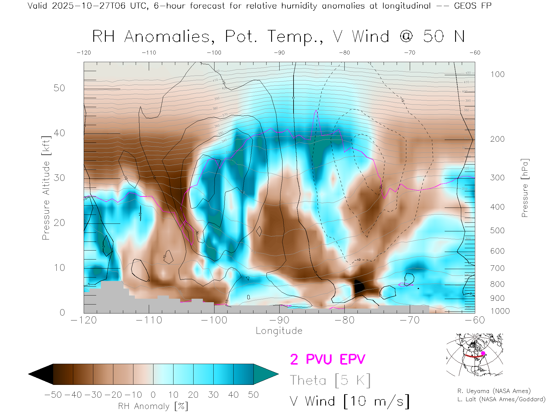 GEOS Forecast Rel. Hum. X-Section (50 N)
