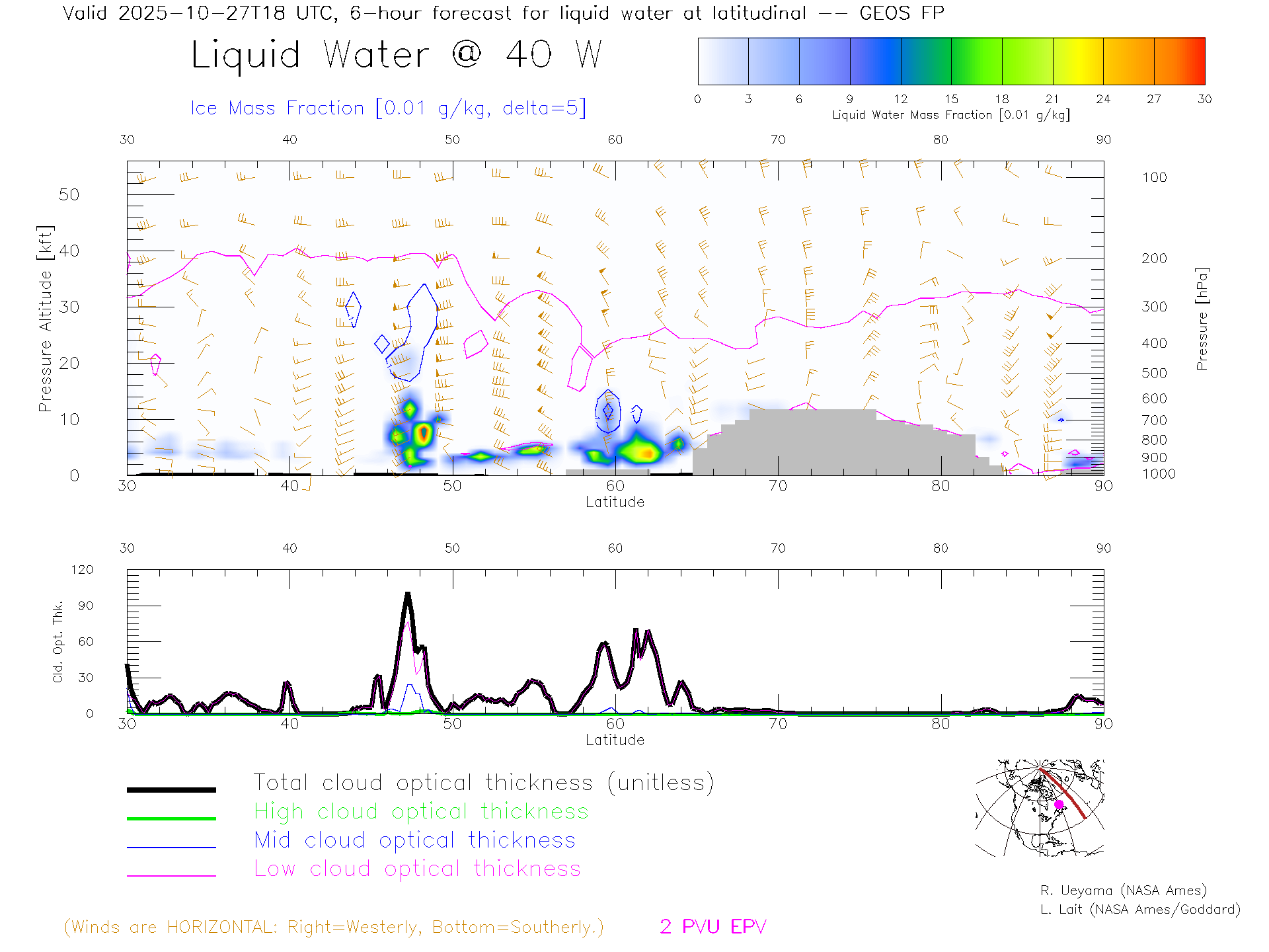GEOS Forecast Cloud Water Content X-Section (40 W)