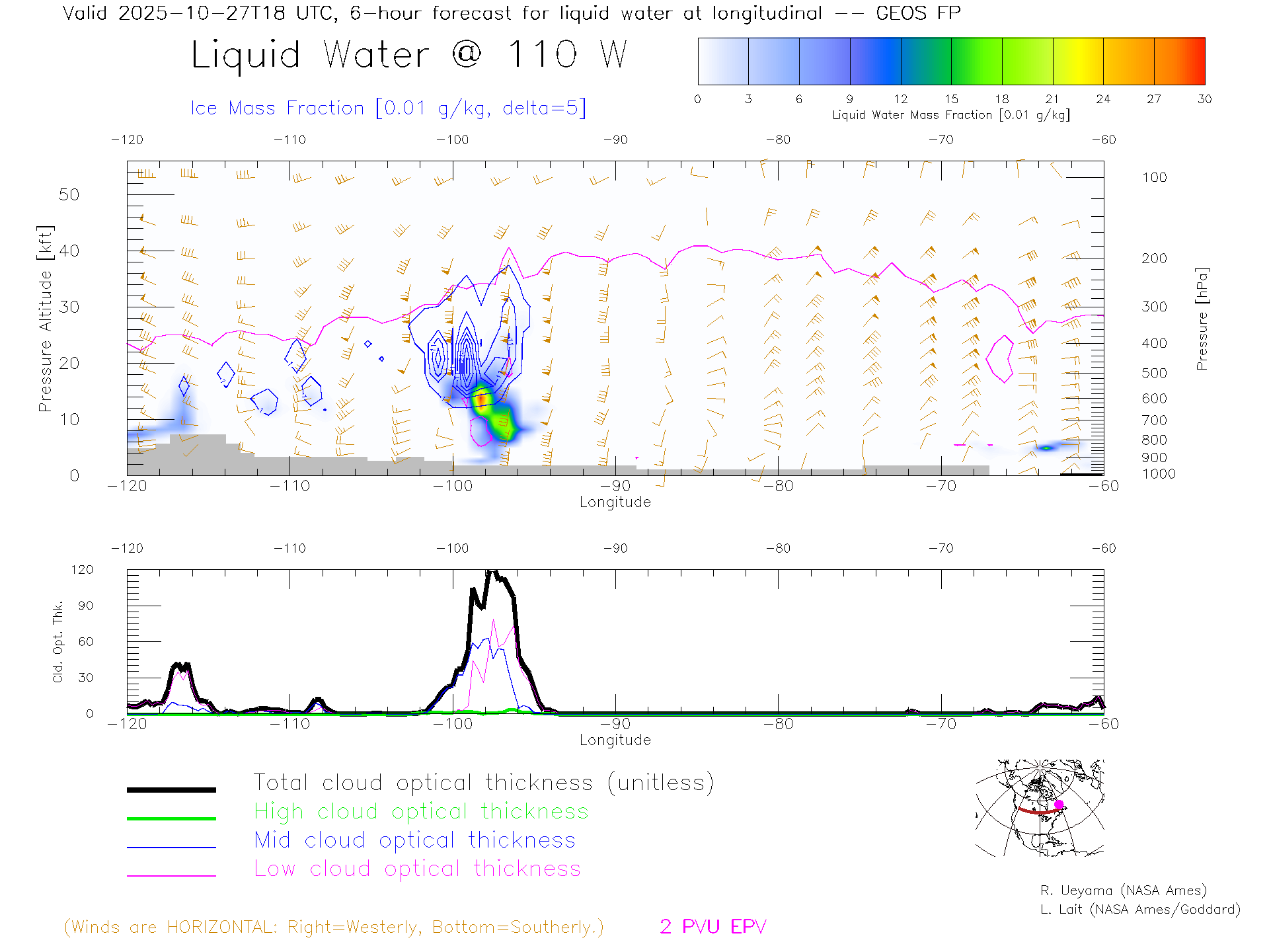 GEOS Forecast Cloud Water Content X-Section (50 N)