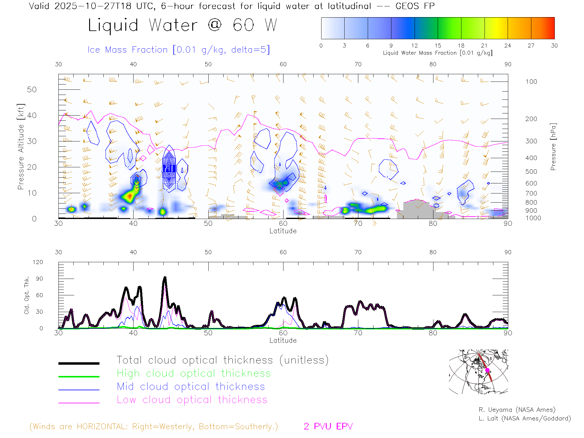 GEOS Forecast Cloud Water Content X-Section (60 W)