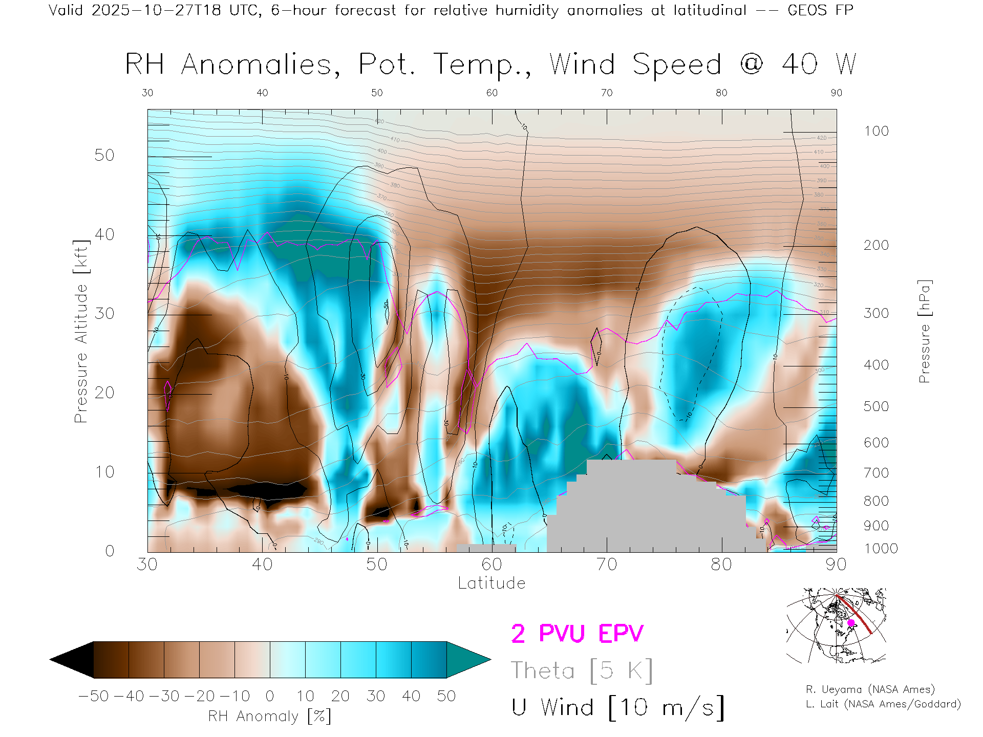 GEOS Forecast Rel. Hum. X-Section (40 W)