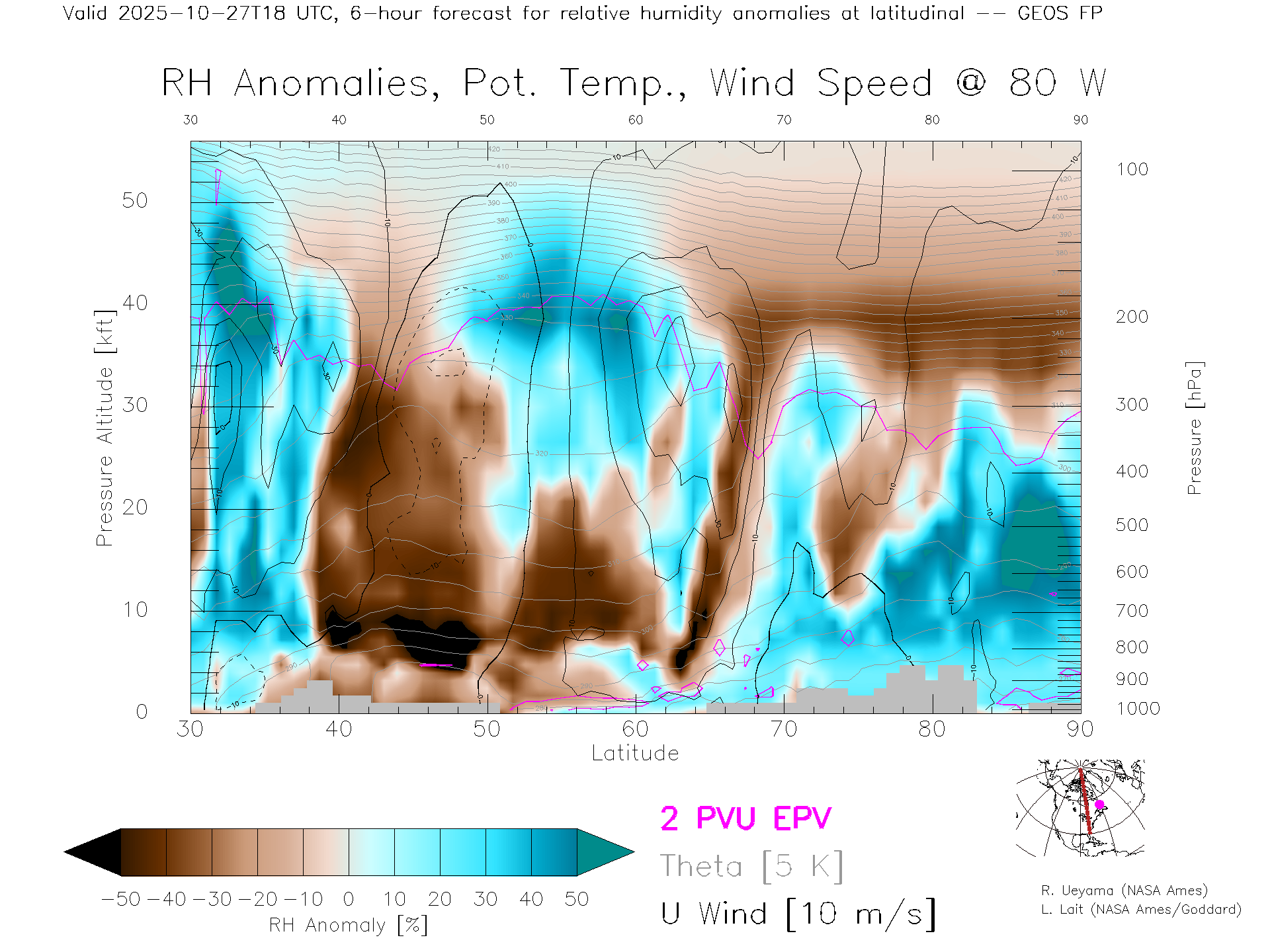 GEOS Forecast Rel. Hum. X-Section (80 W)
