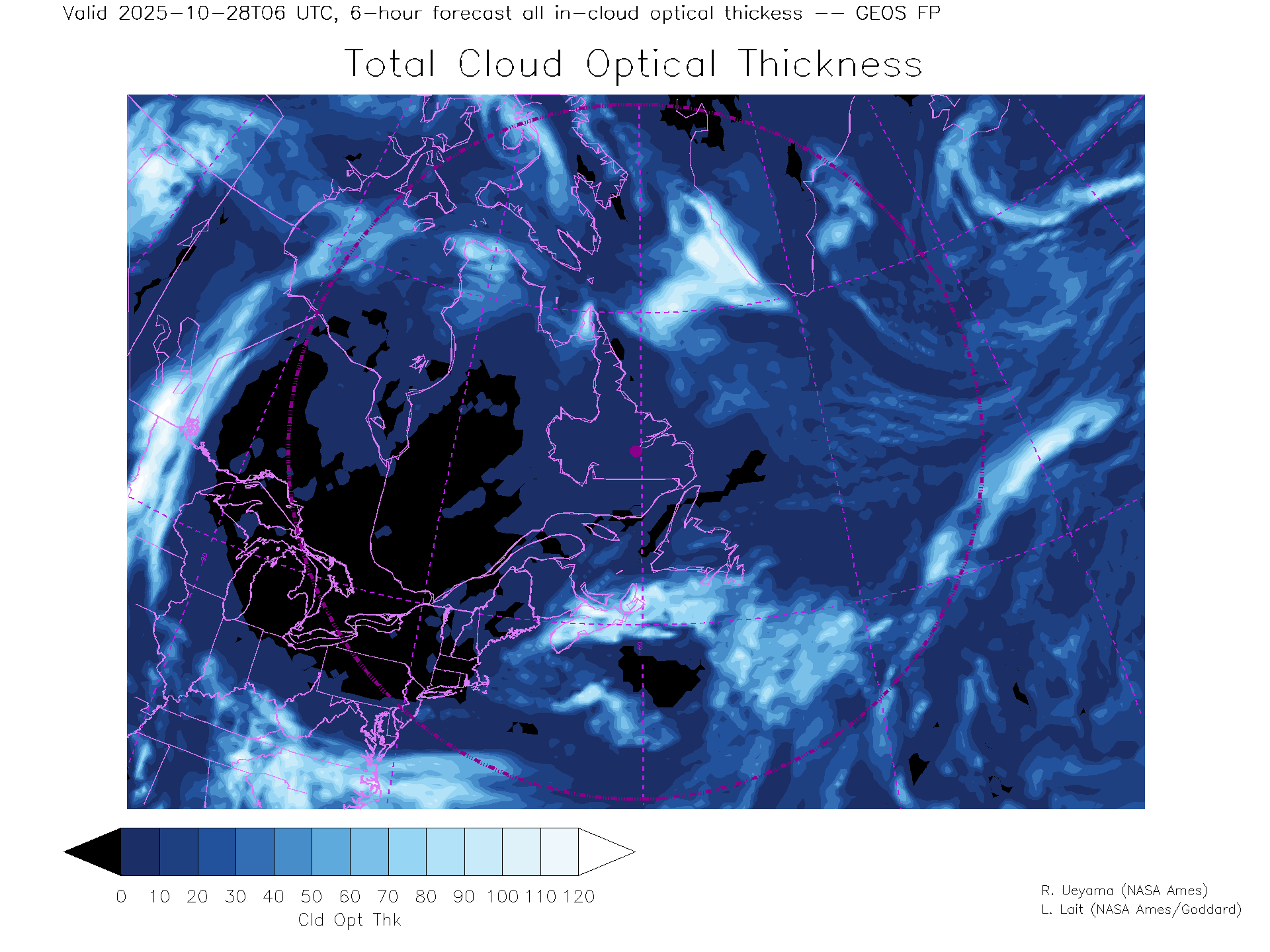 GEOS Forecast Total Cloud Optical thickness