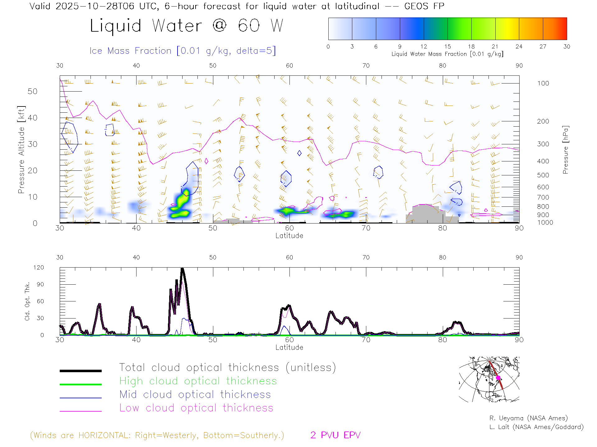 GEOS Forecast Cloud Water Content X-Section (60 W)