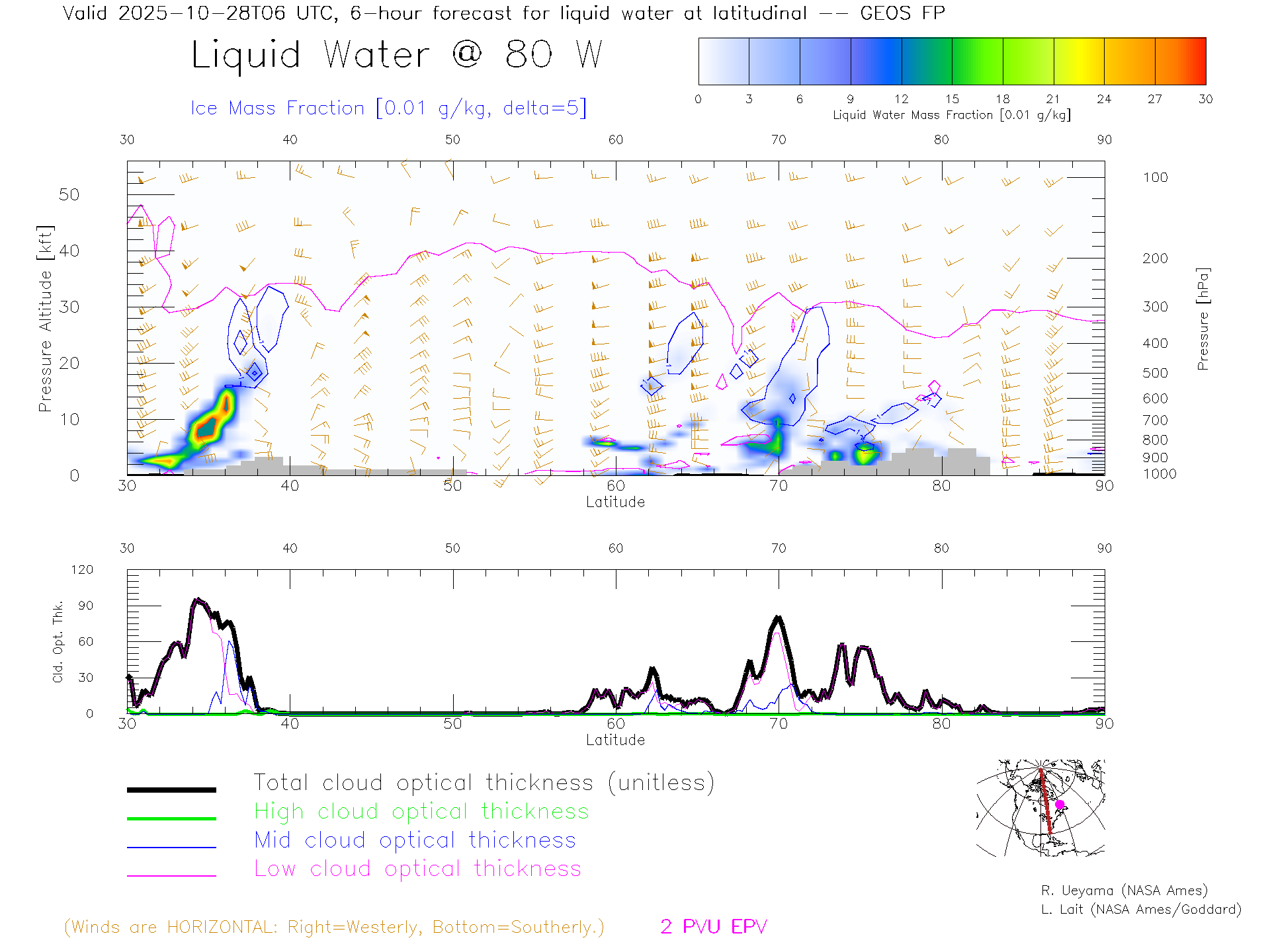 GEOS Forecast Cloud Water Content X-Section (80 W)