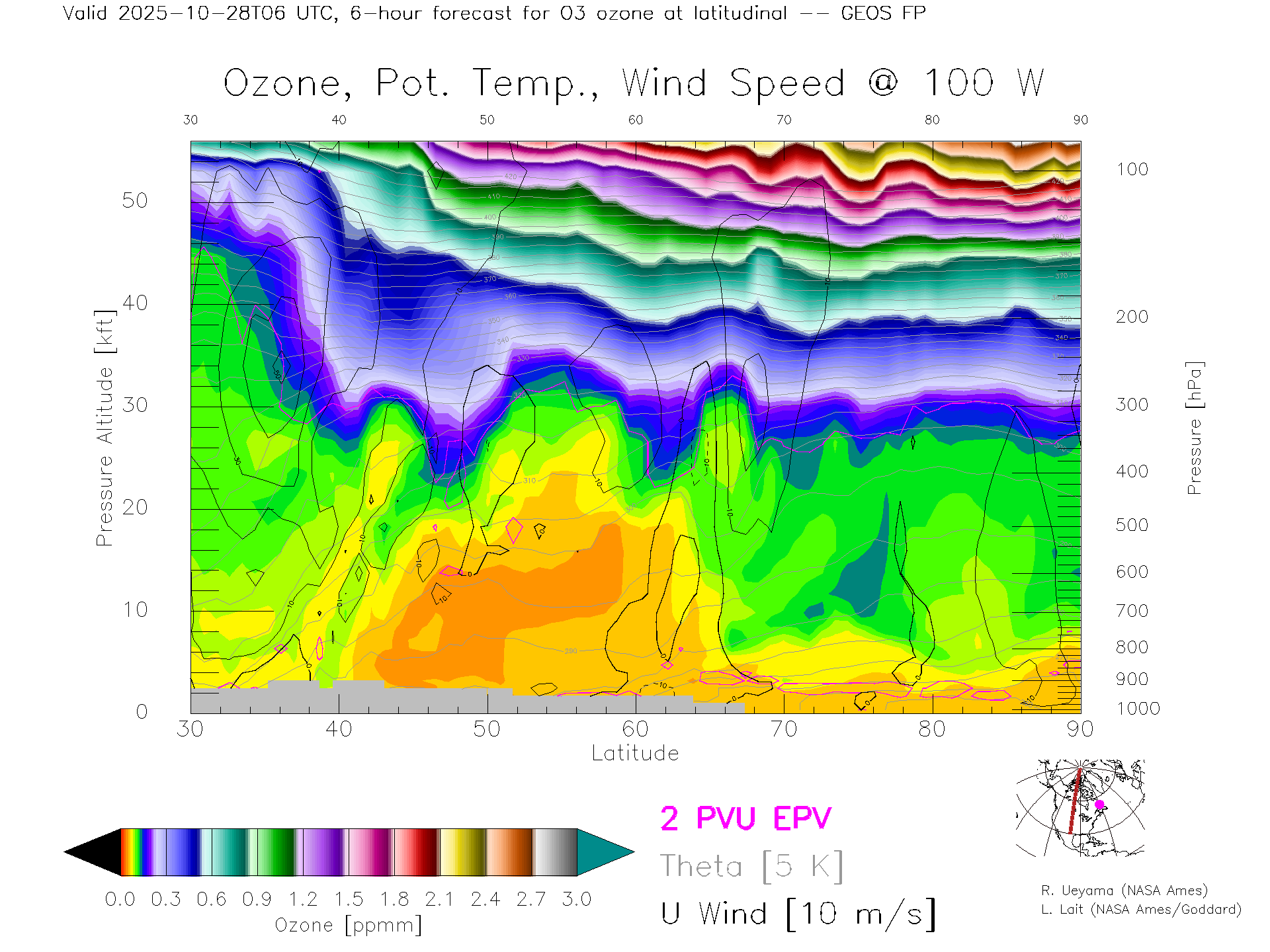 GEOS Forecast Ozone X-Section (100 W)