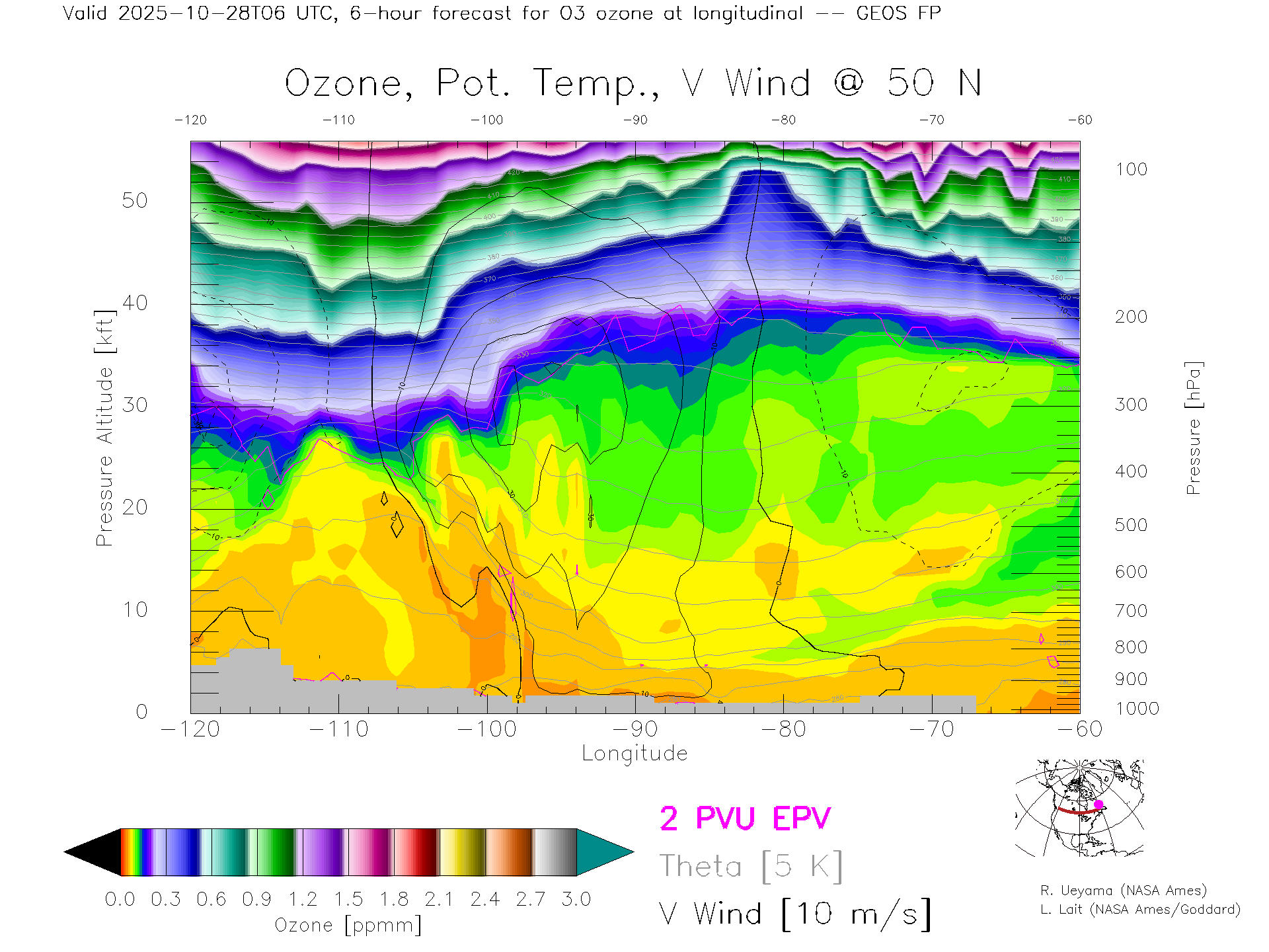 GEOS Forecast Ozone X-Section (50 N)