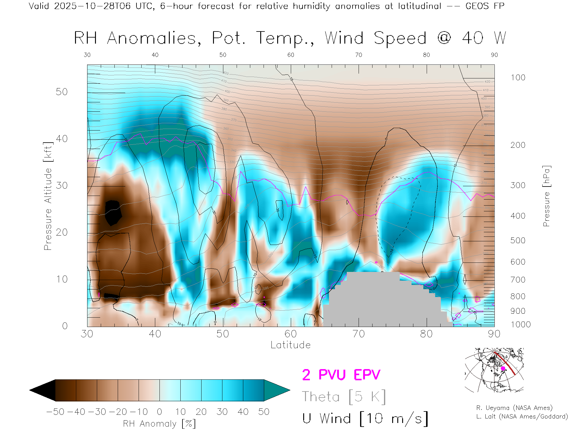 GEOS Forecast Rel. Hum. X-Section (40 W)