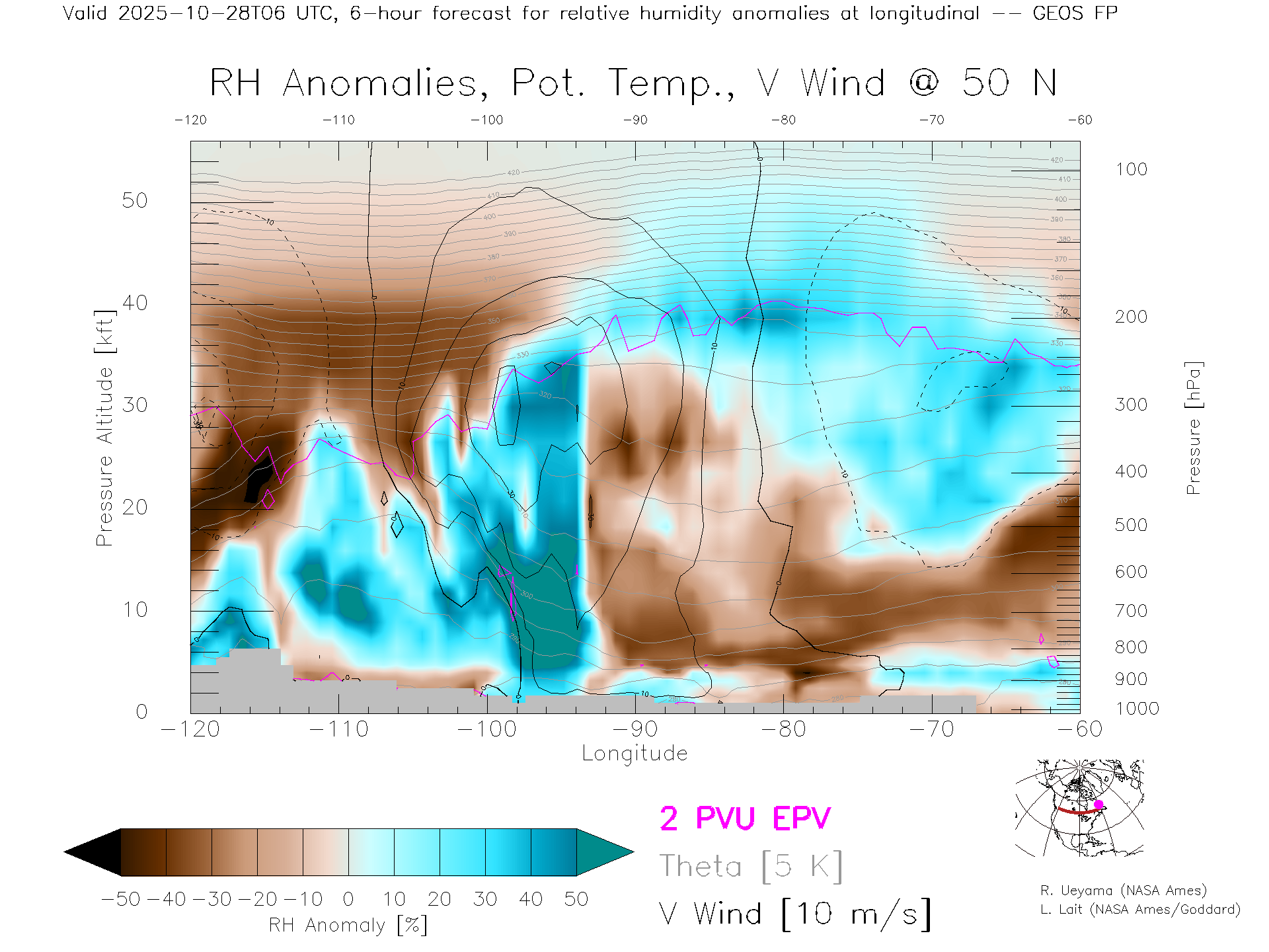 GEOS Forecast Rel. Hum. X-Section (50 N)
