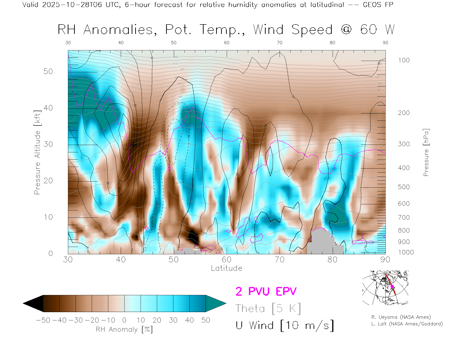 GEOS Forecast Rel. Hum. X-Section (60 W)