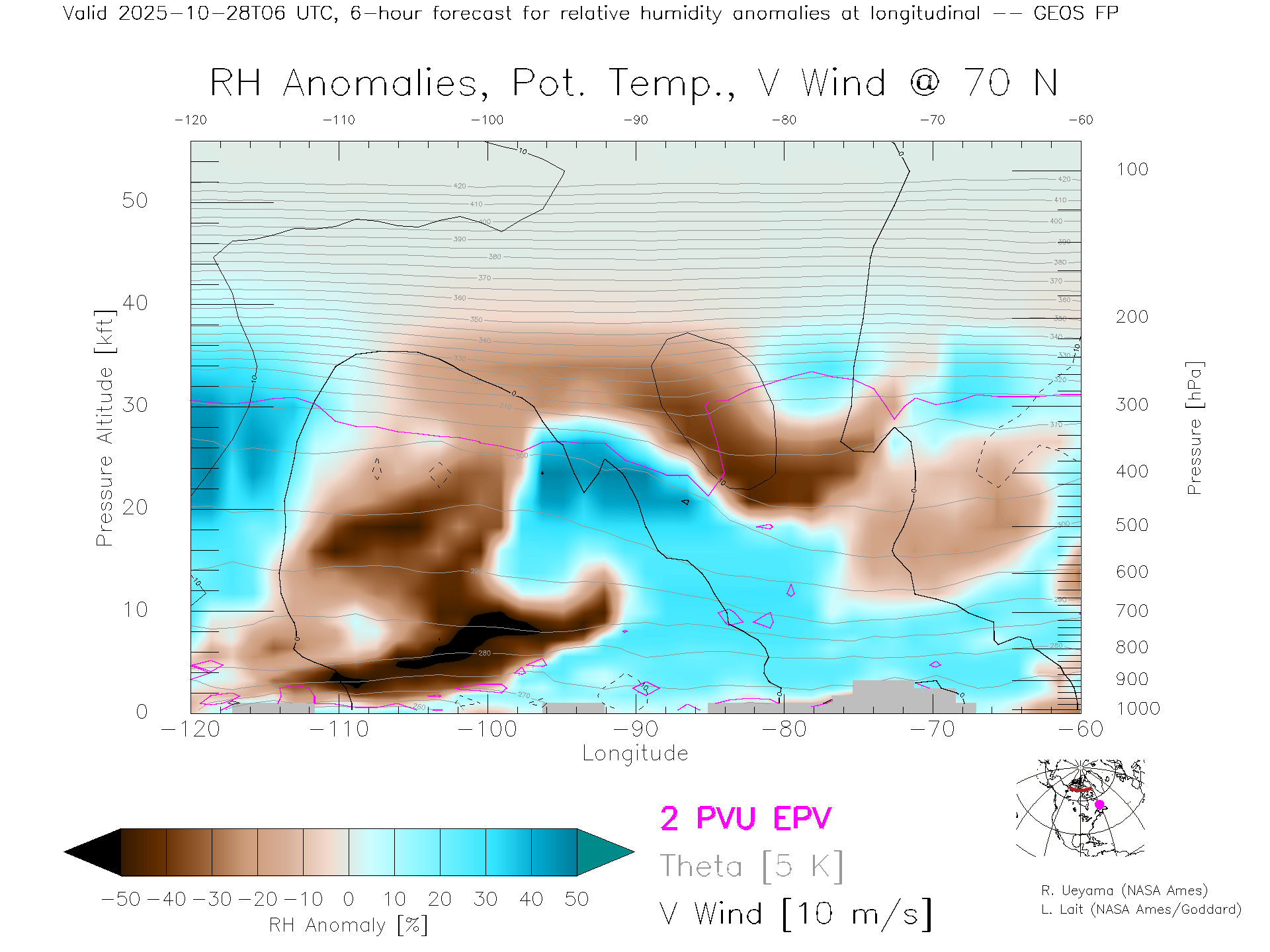 GEOS Forecast Rel. Hum. X-Section (70 N)