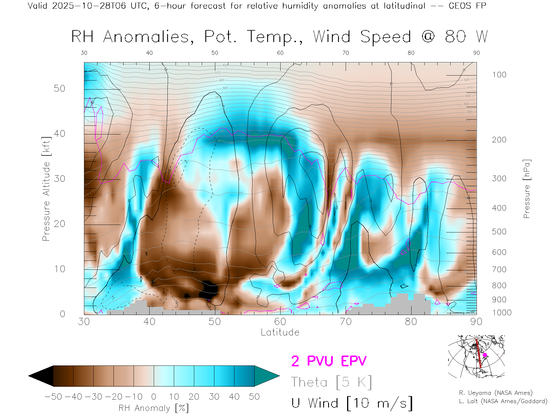 GEOS Forecast Rel. Hum. X-Section (80 W)