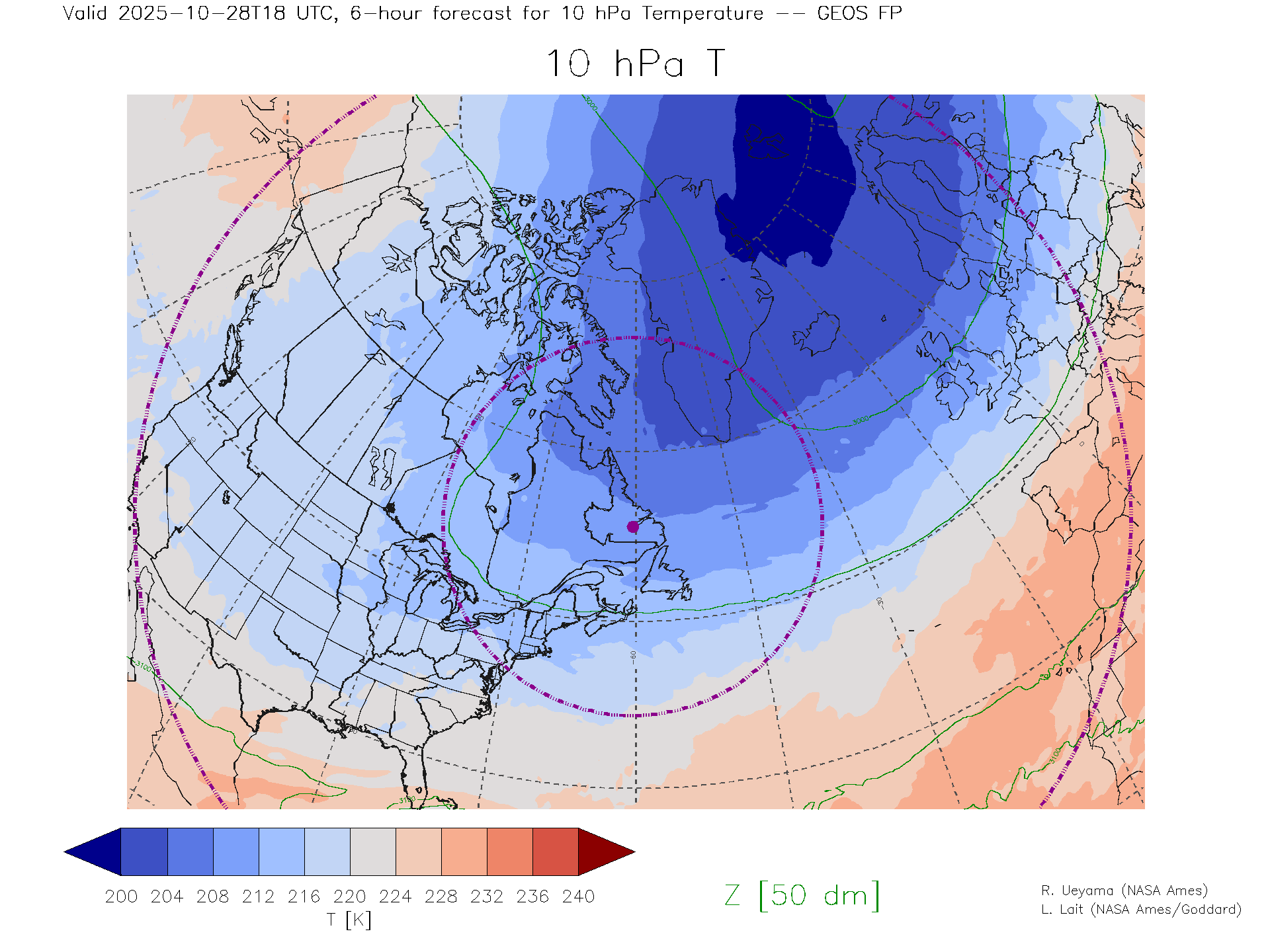 GEOS Forecast 10 hPa Temp.