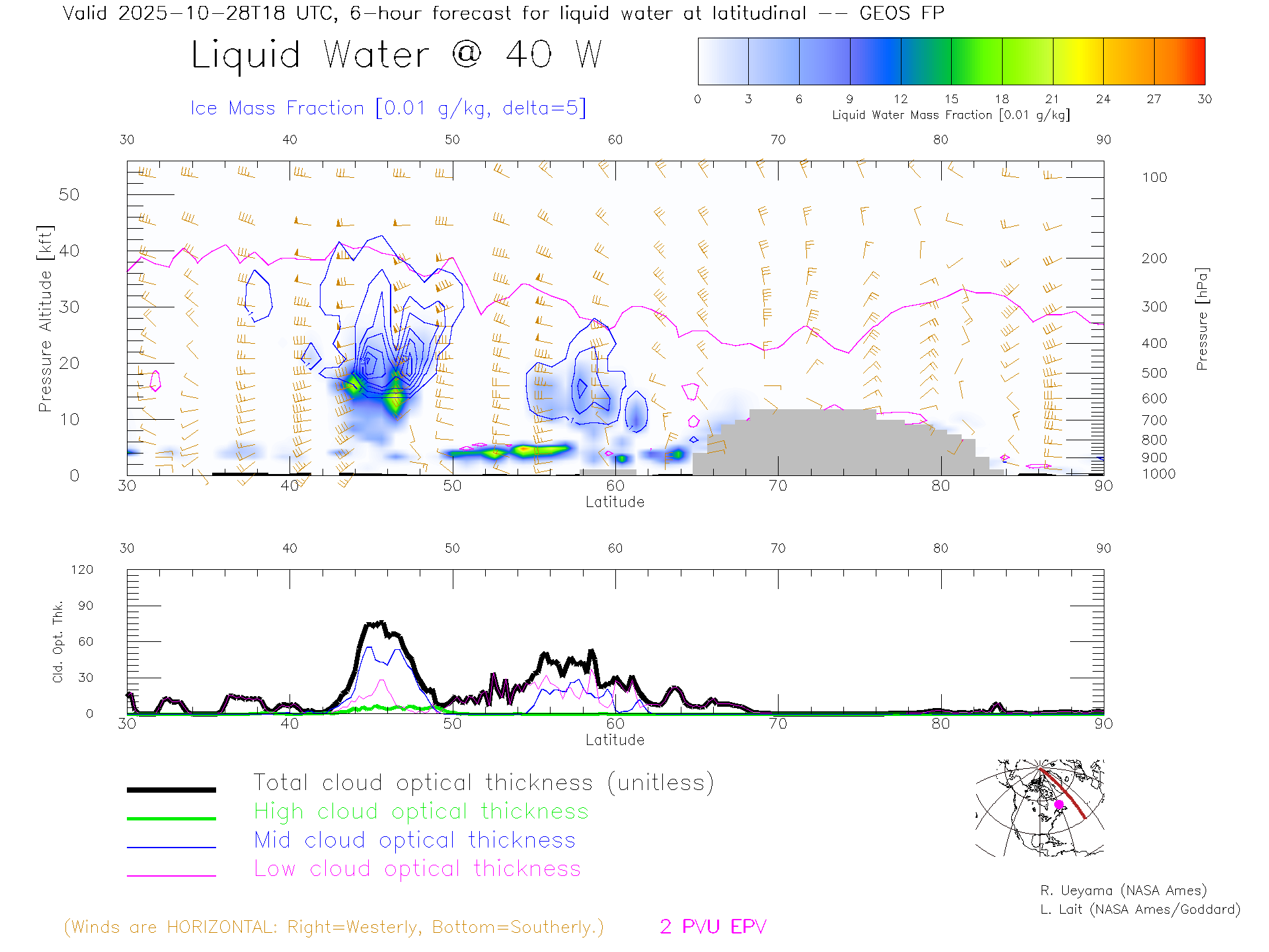 GEOS Forecast Cloud Water Content X-Section (40 W)