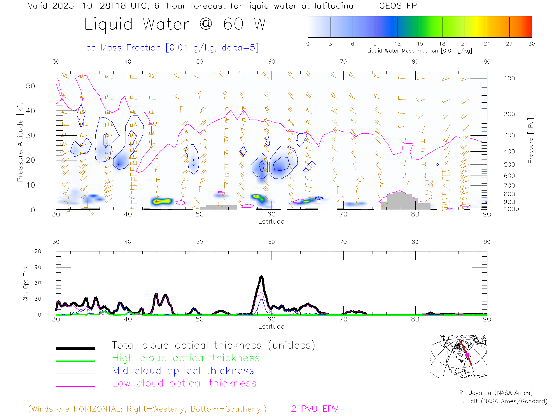 GEOS Forecast Cloud Water Content X-Section (60 W)