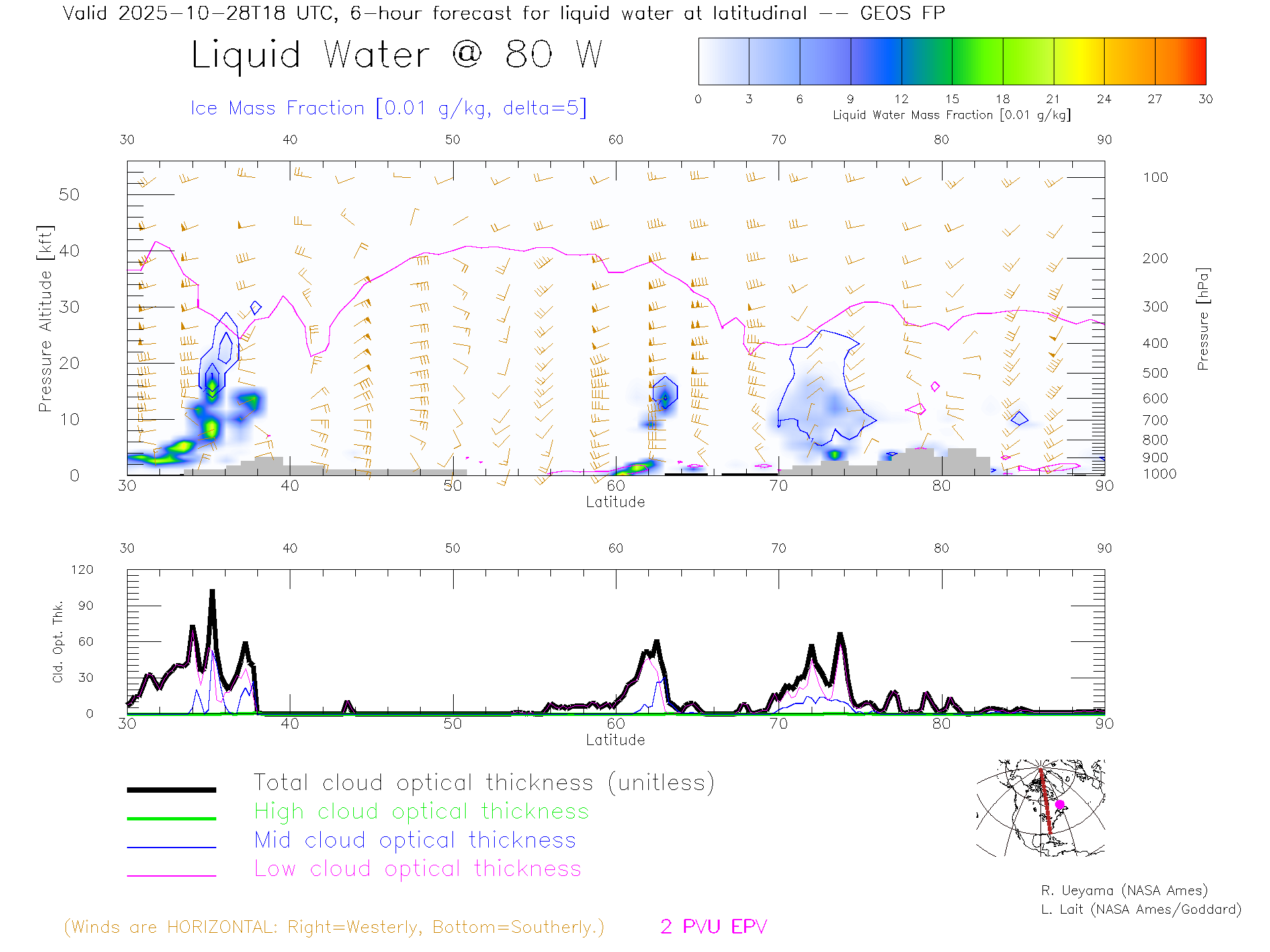 GEOS Forecast Cloud Water Content X-Section (80 W)