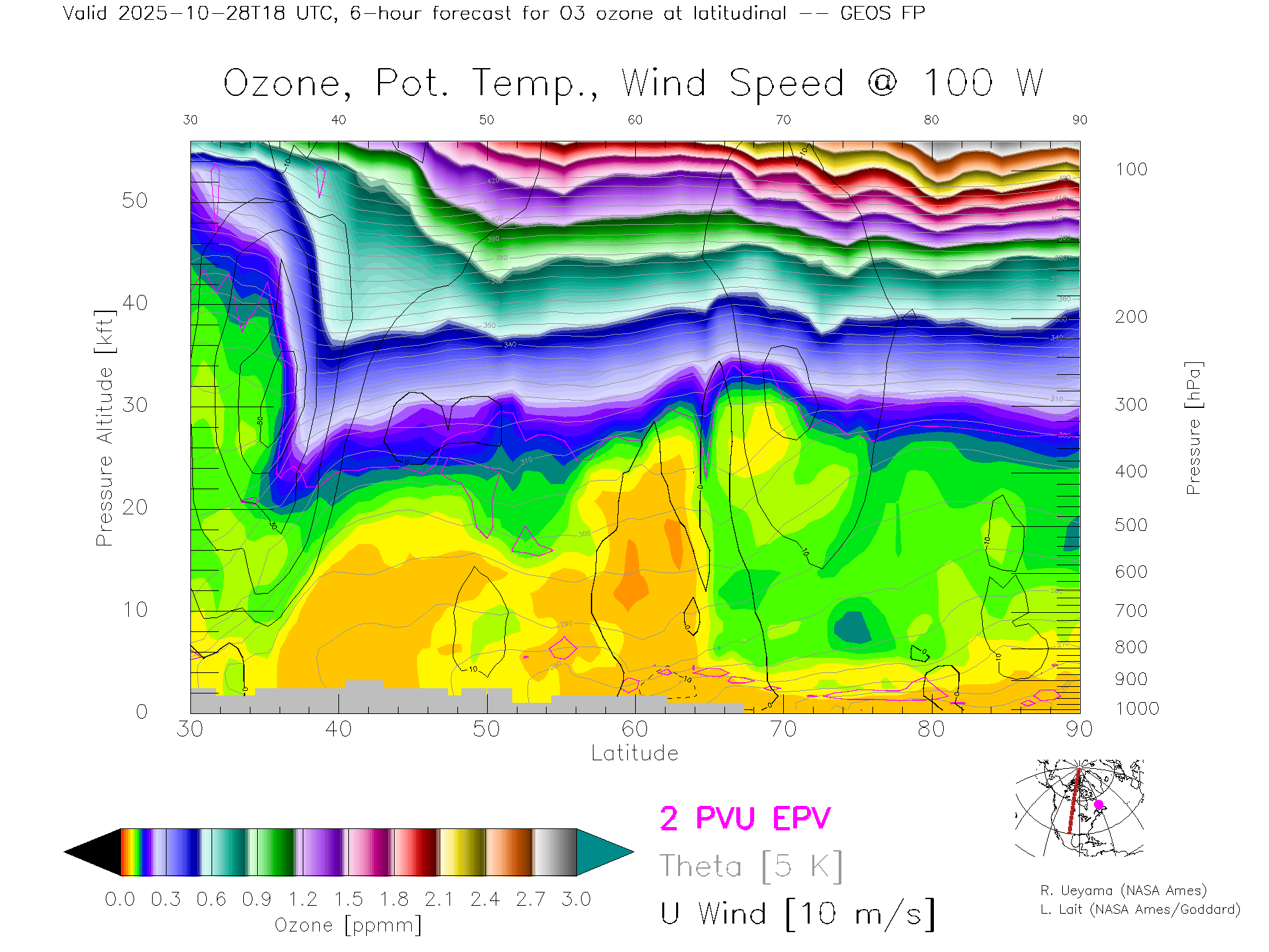GEOS Forecast Ozone X-Section (100 W)