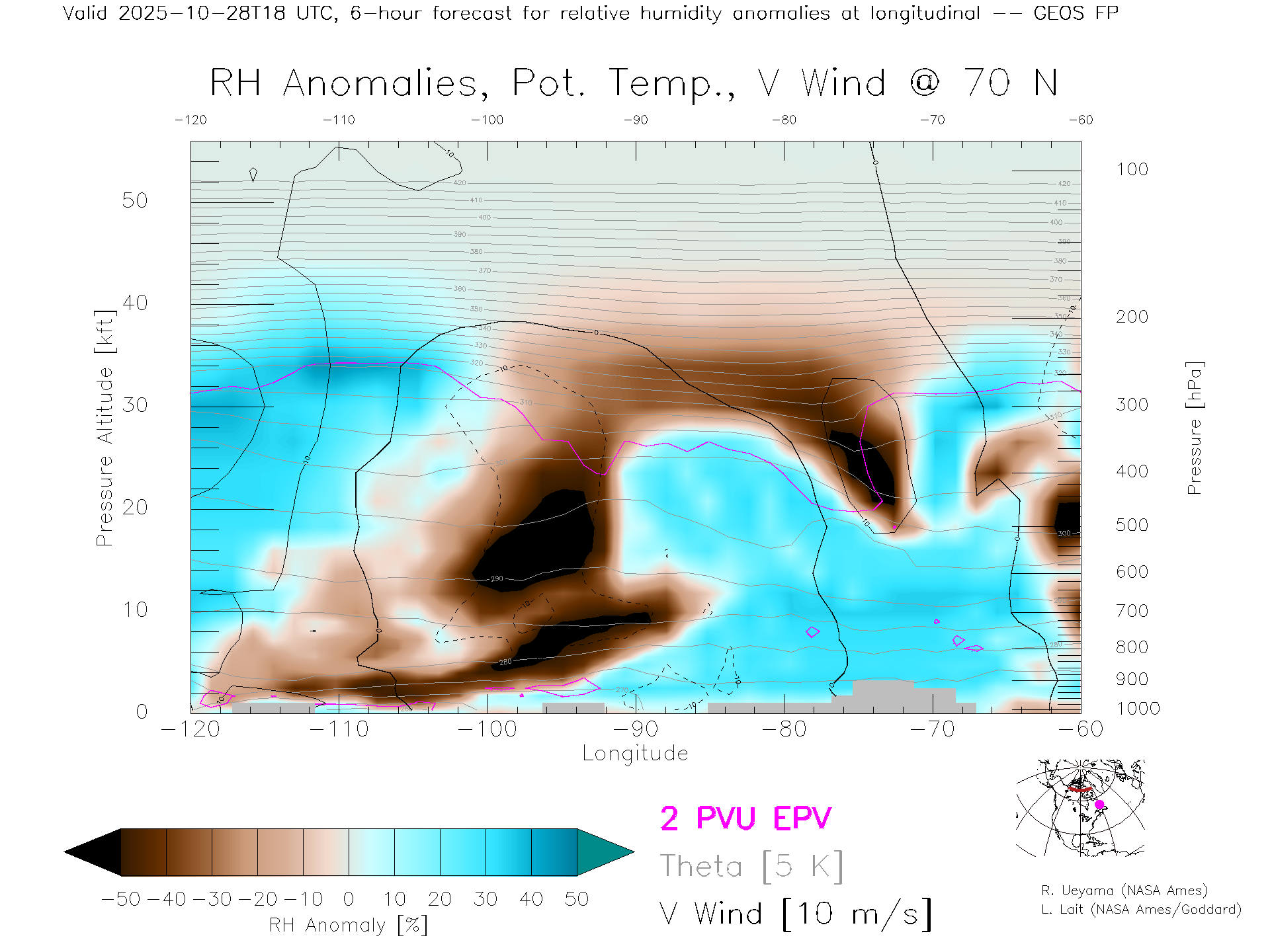 GEOS Forecast Rel. Hum. X-Section (70 N)