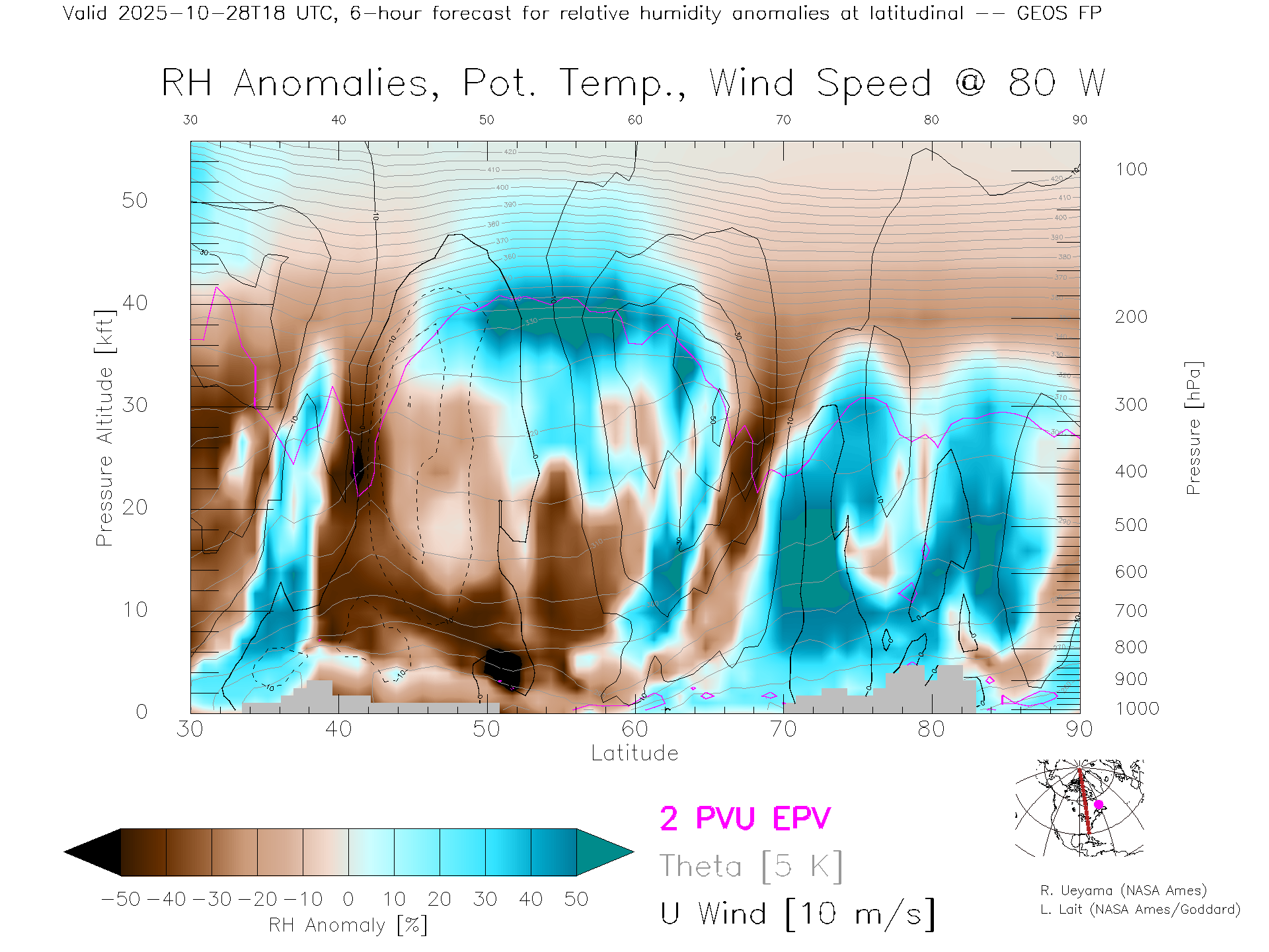 GEOS Forecast Rel. Hum. X-Section (80 W)