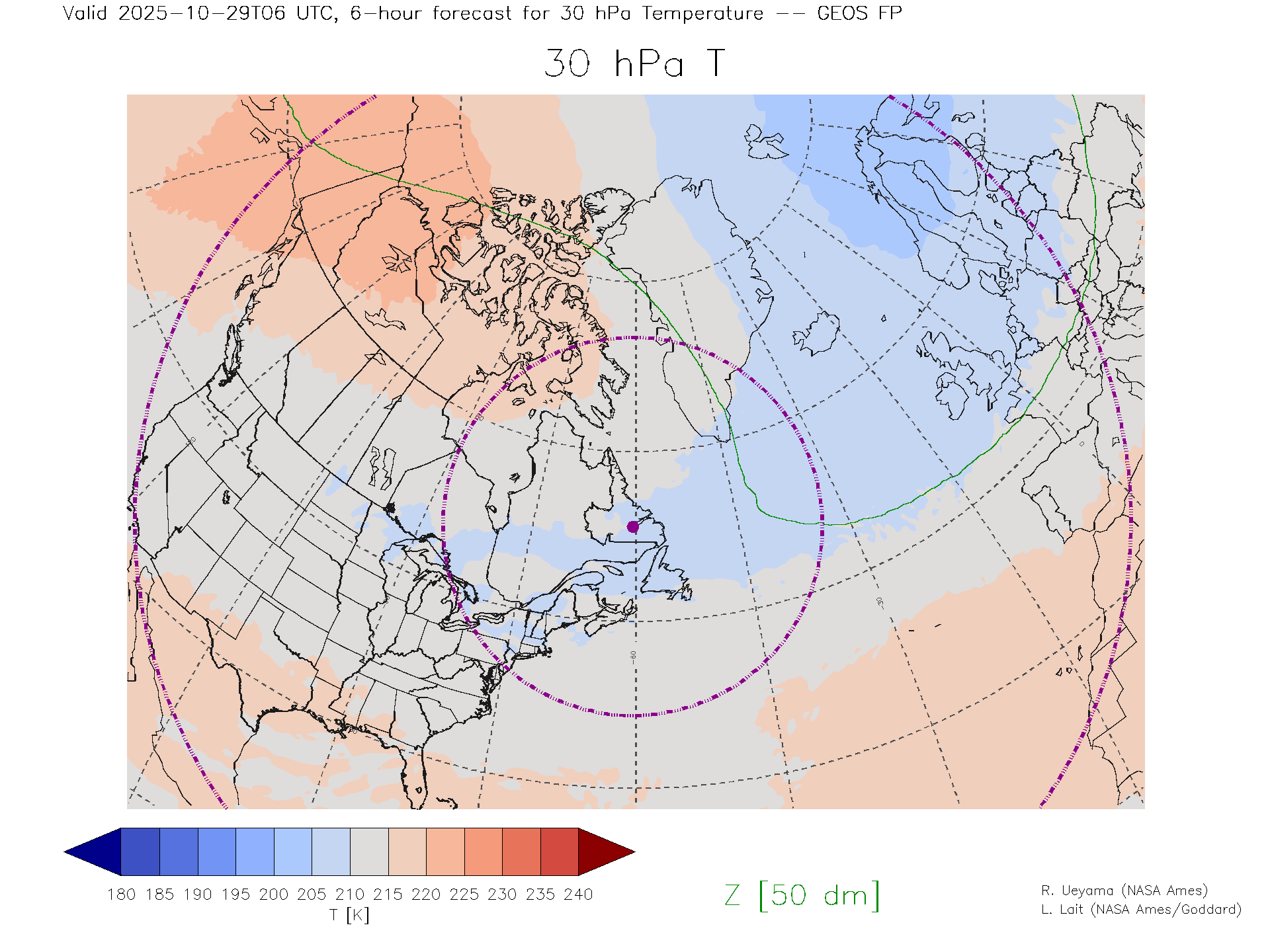 GEOS Forecast 30 hPa Temp.