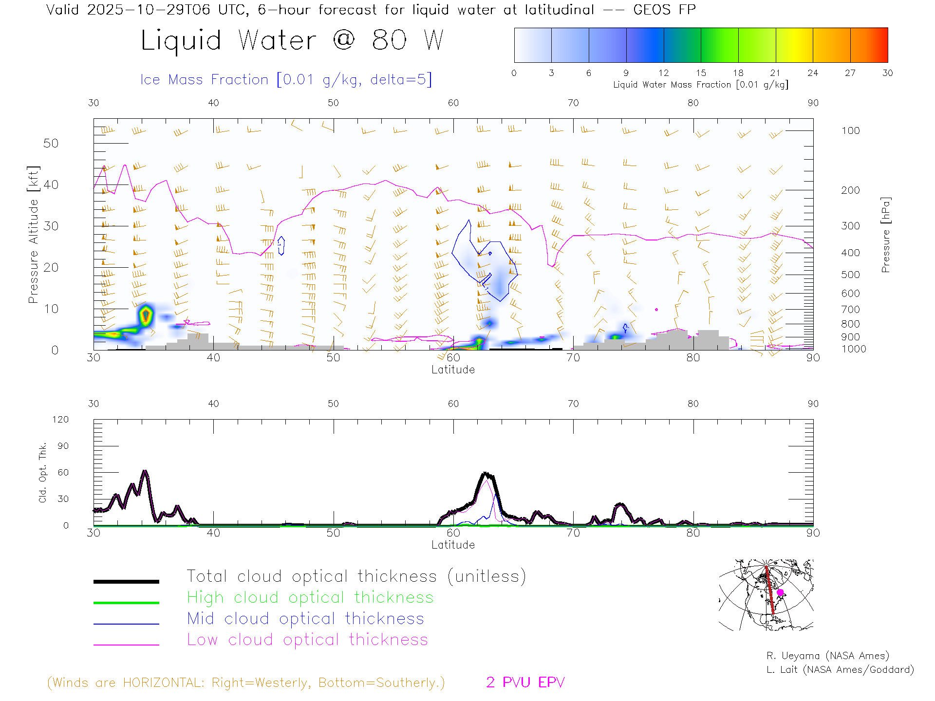 GEOS Forecast Cloud Water Content X-Section (80 W)
