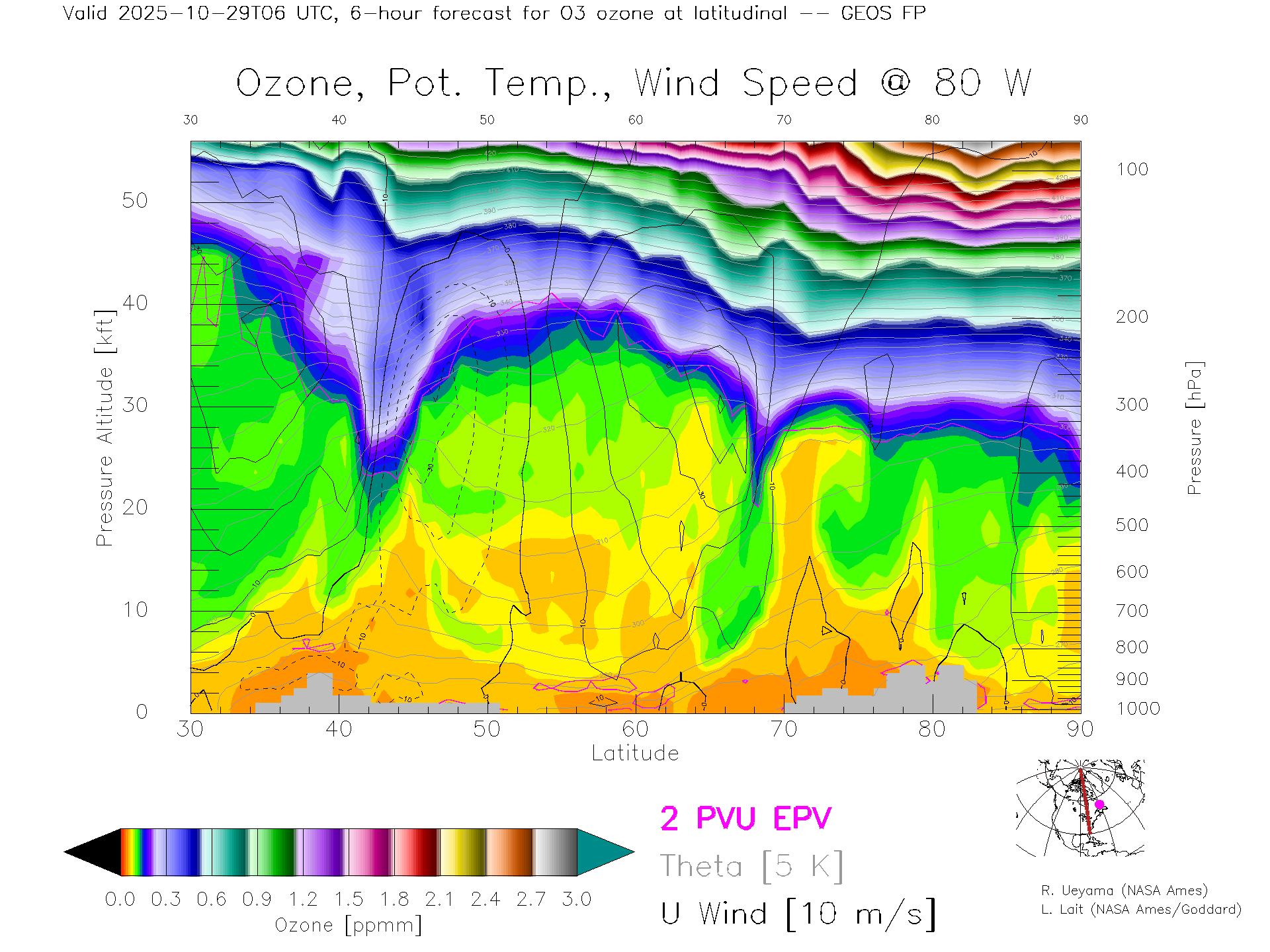 GEOS Forecast Ozone X-Section (80 W)