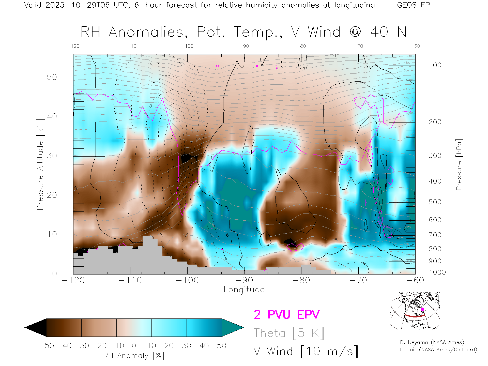 GEOS Forecast Rel. Hum. X-Section (40 N)