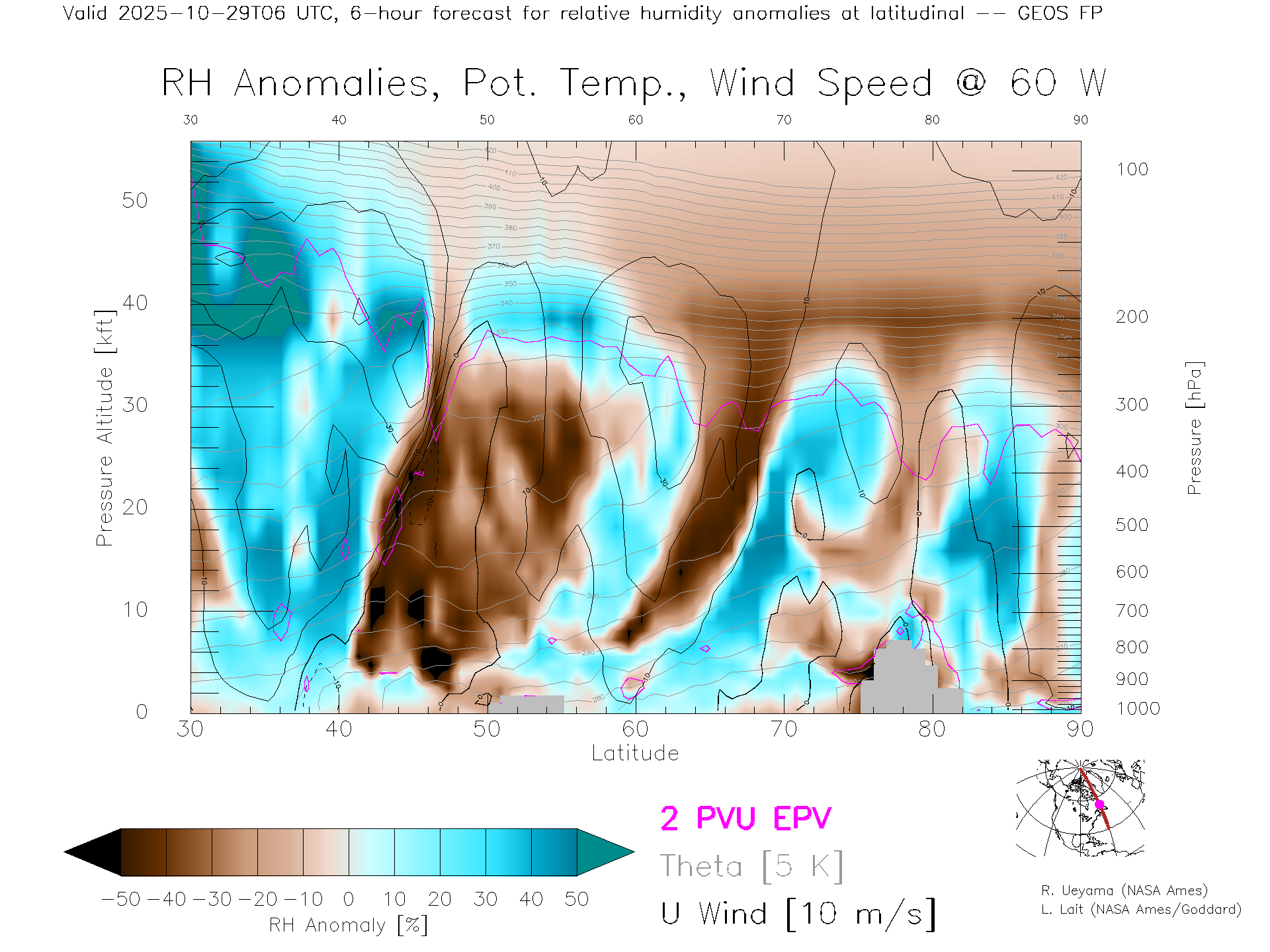 GEOS Forecast Rel. Hum. X-Section (60 W)