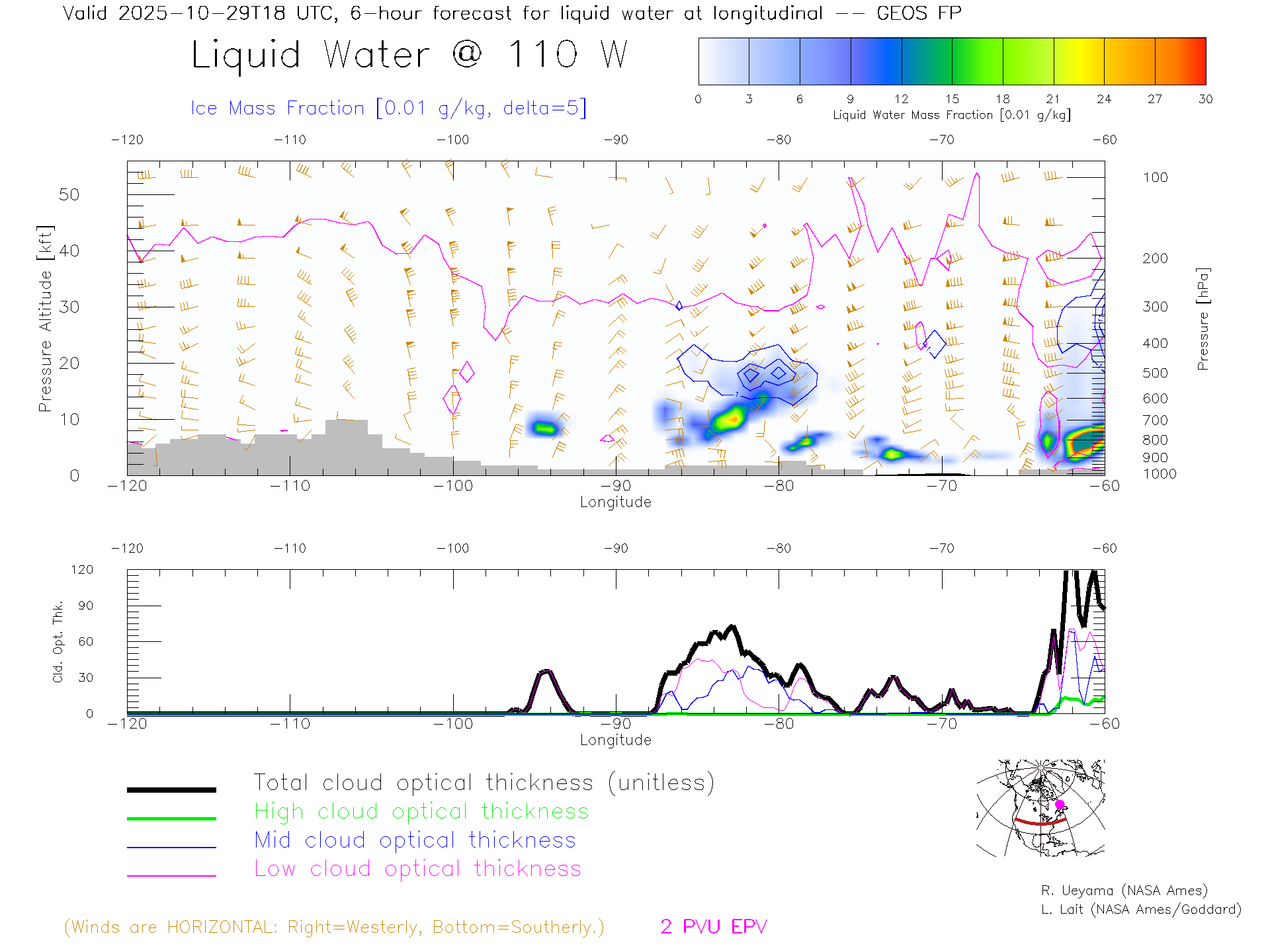 GEOS Forecast Cloud Water Content X-Section (40 N)