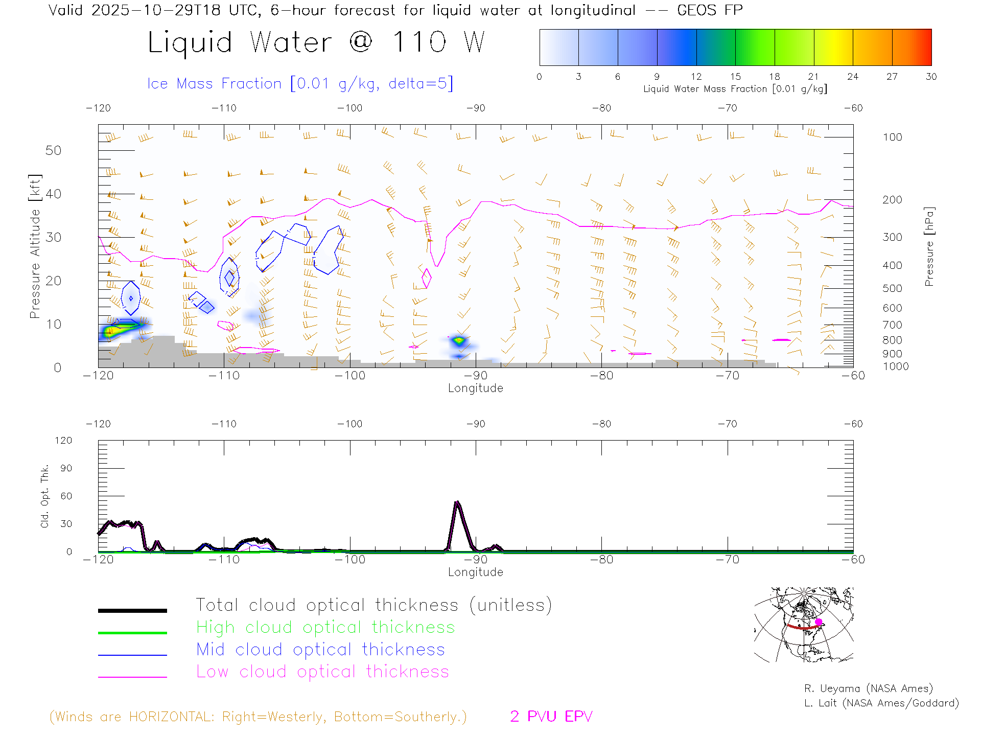 GEOS Forecast Cloud Water Content X-Section (50 N)