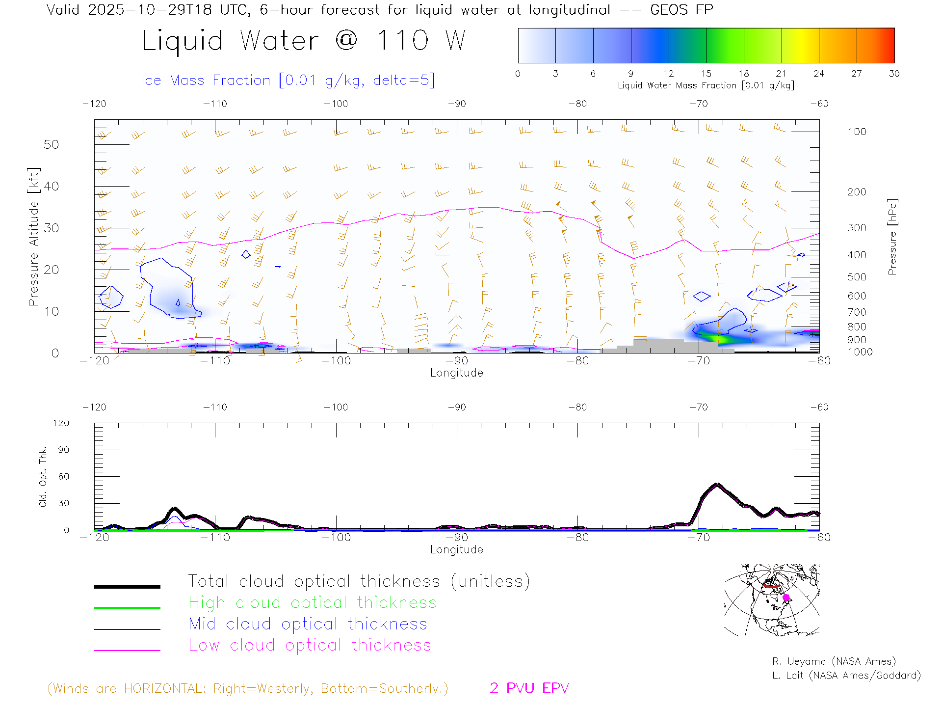 GEOS Forecast Cloud Water Content X-Section (70 N)