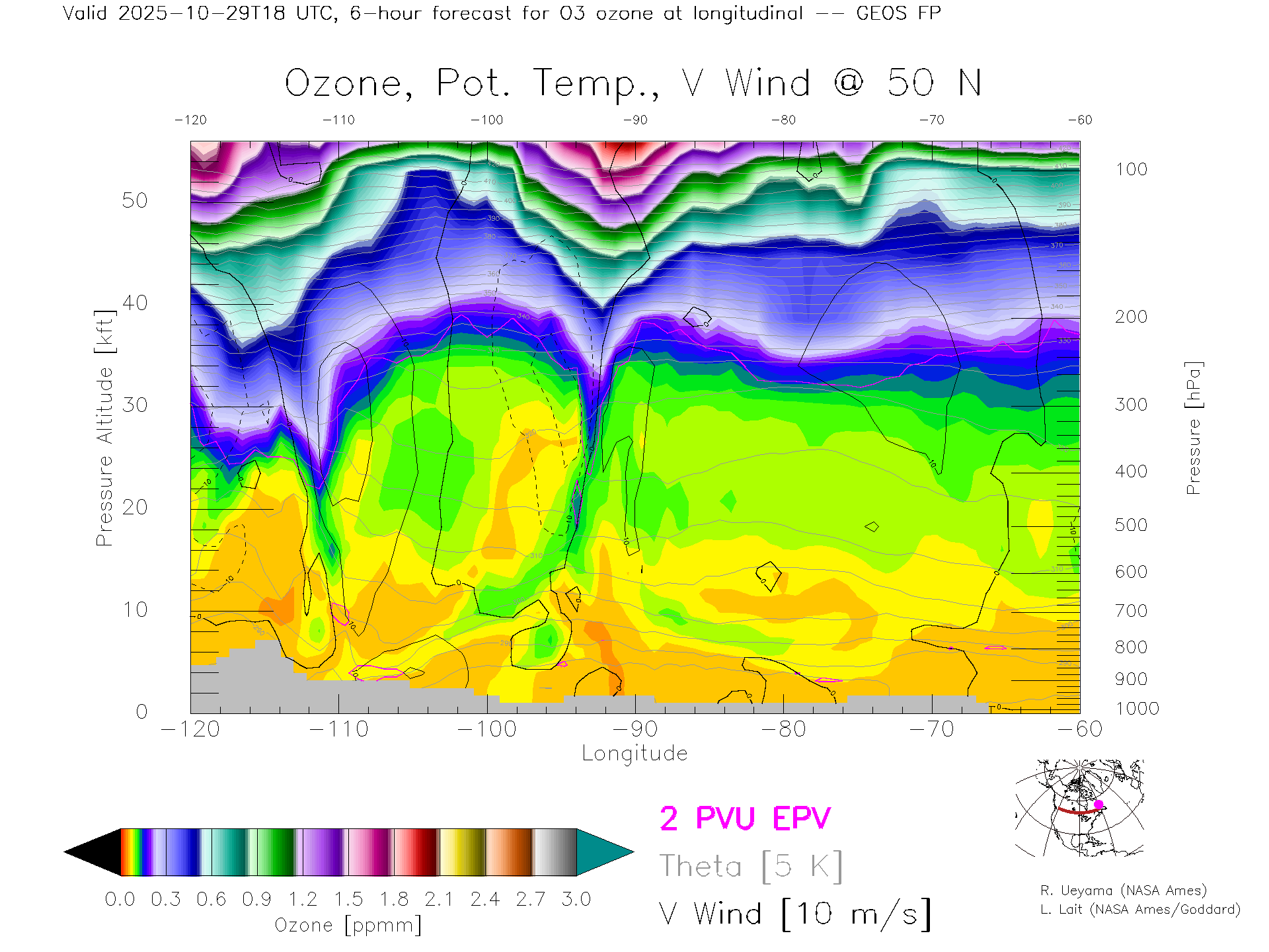 GEOS Forecast Ozone X-Section (50 N)