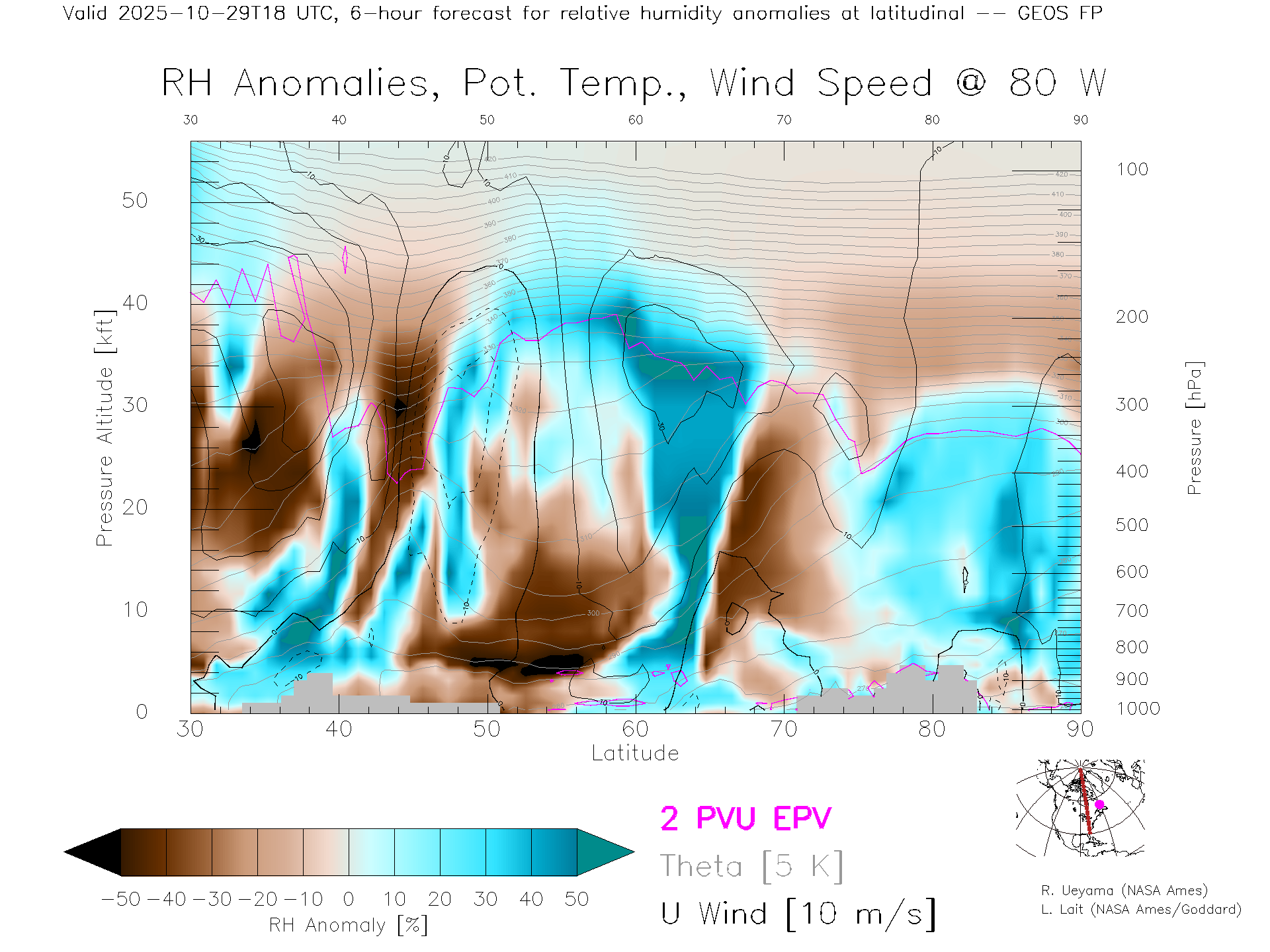 GEOS Forecast Rel. Hum. X-Section (80 W)
