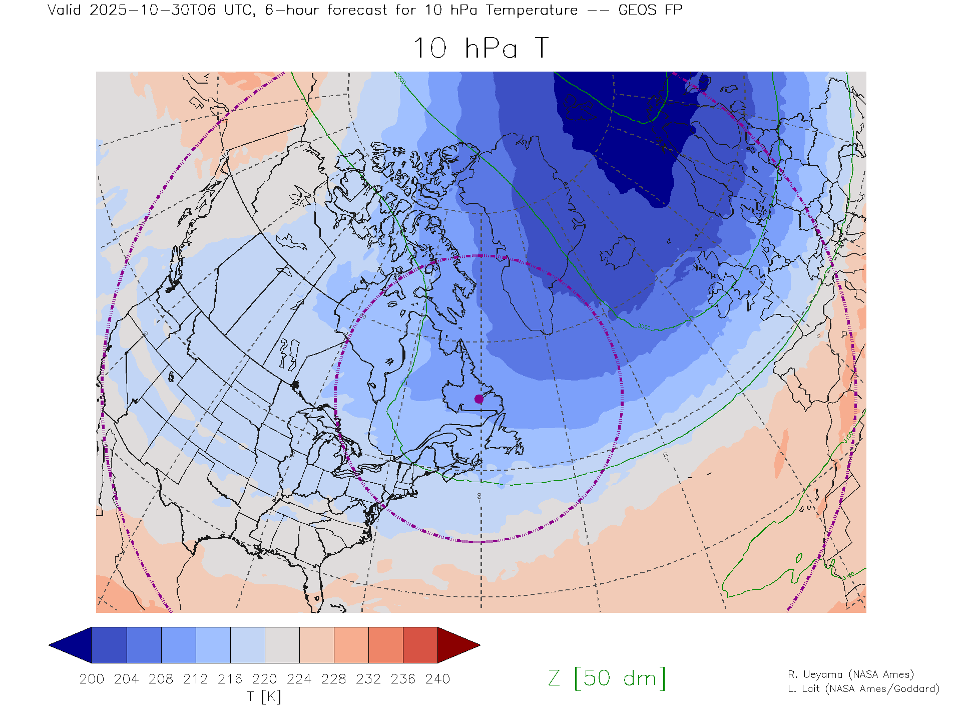 GEOS Forecast 10 hPa Temp.