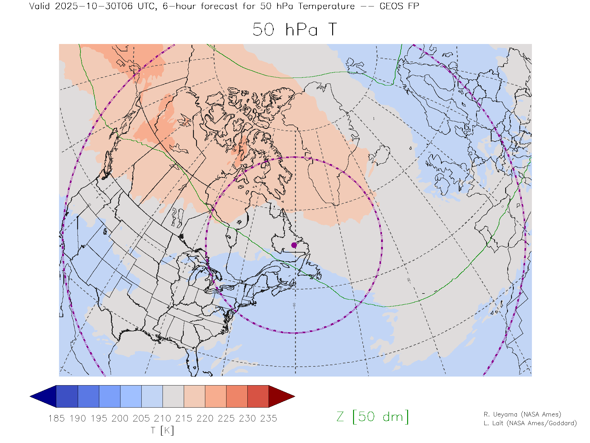 GEOS Forecast 50 hPa Temp.