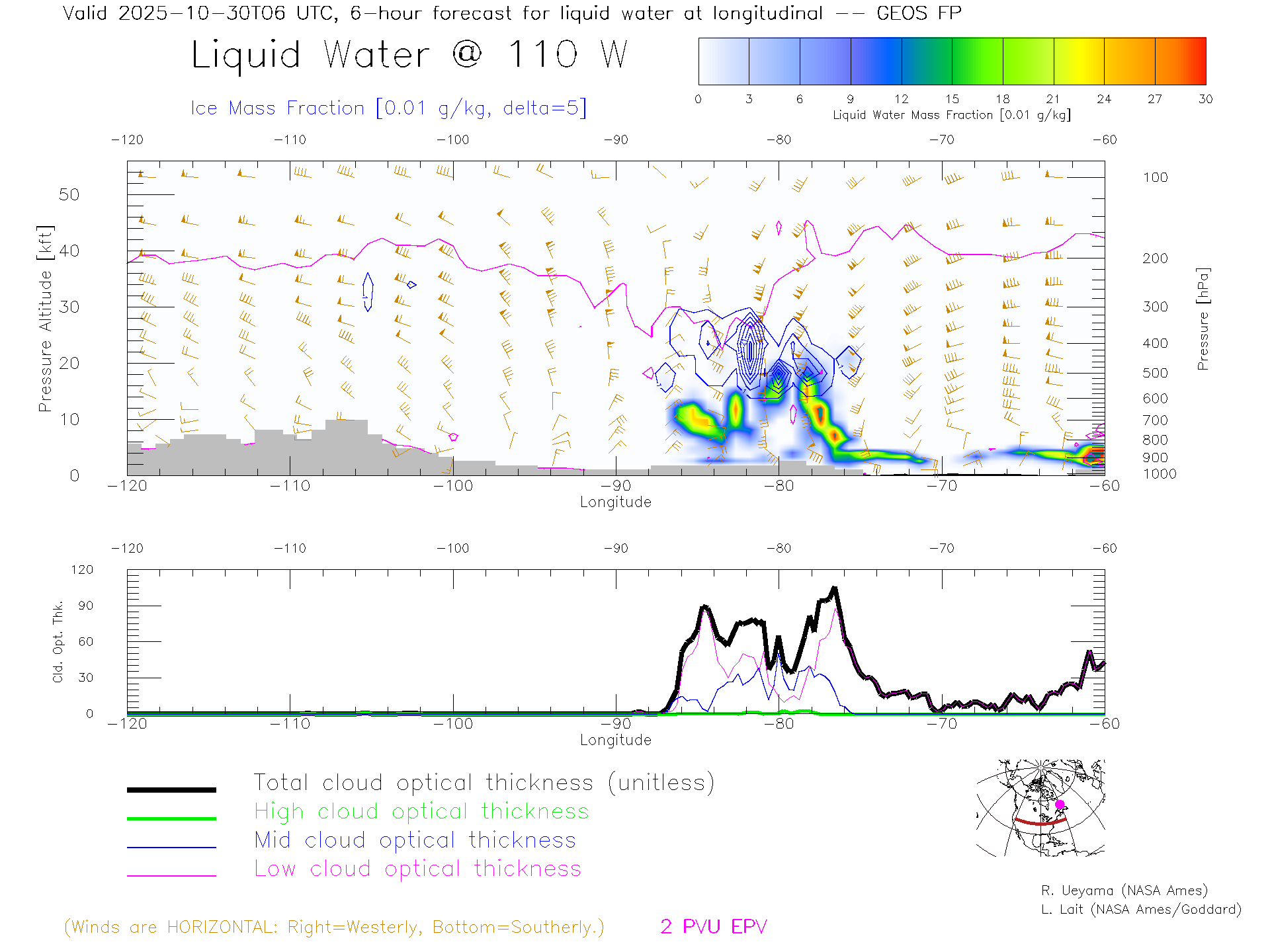 GEOS Forecast Cloud Water Content X-Section (40 N)