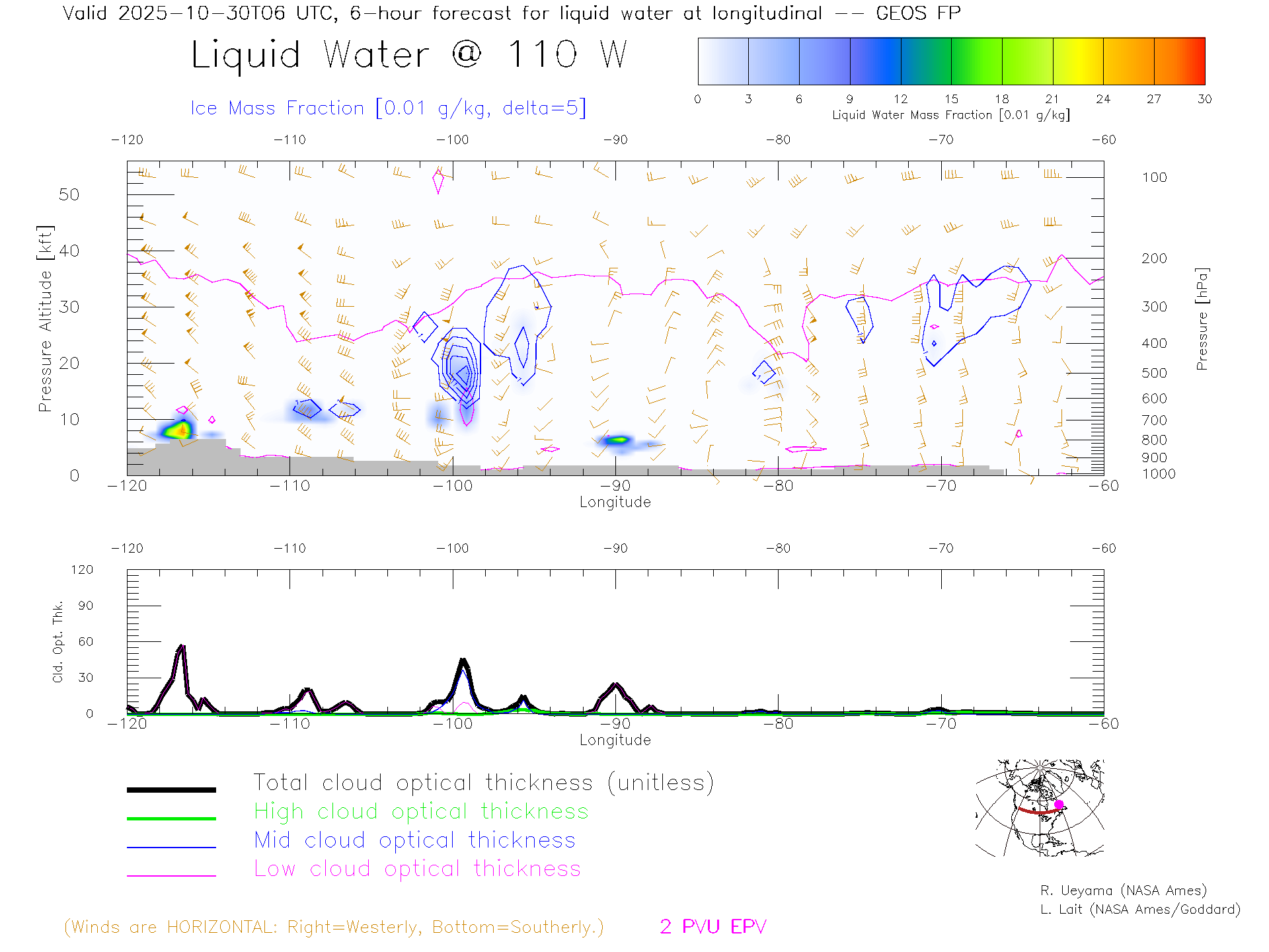 GEOS Forecast Cloud Water Content X-Section (50 N)