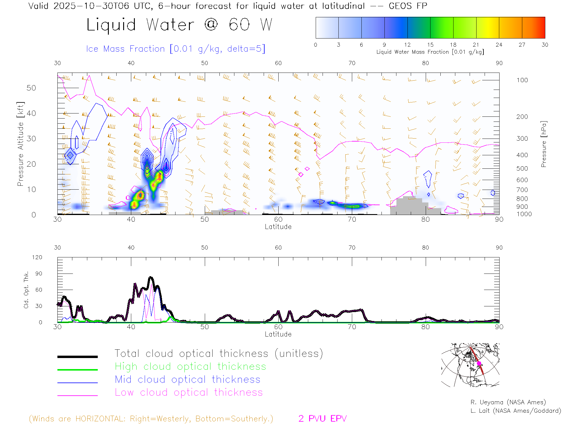 GEOS Forecast Cloud Water Content X-Section (60 W)