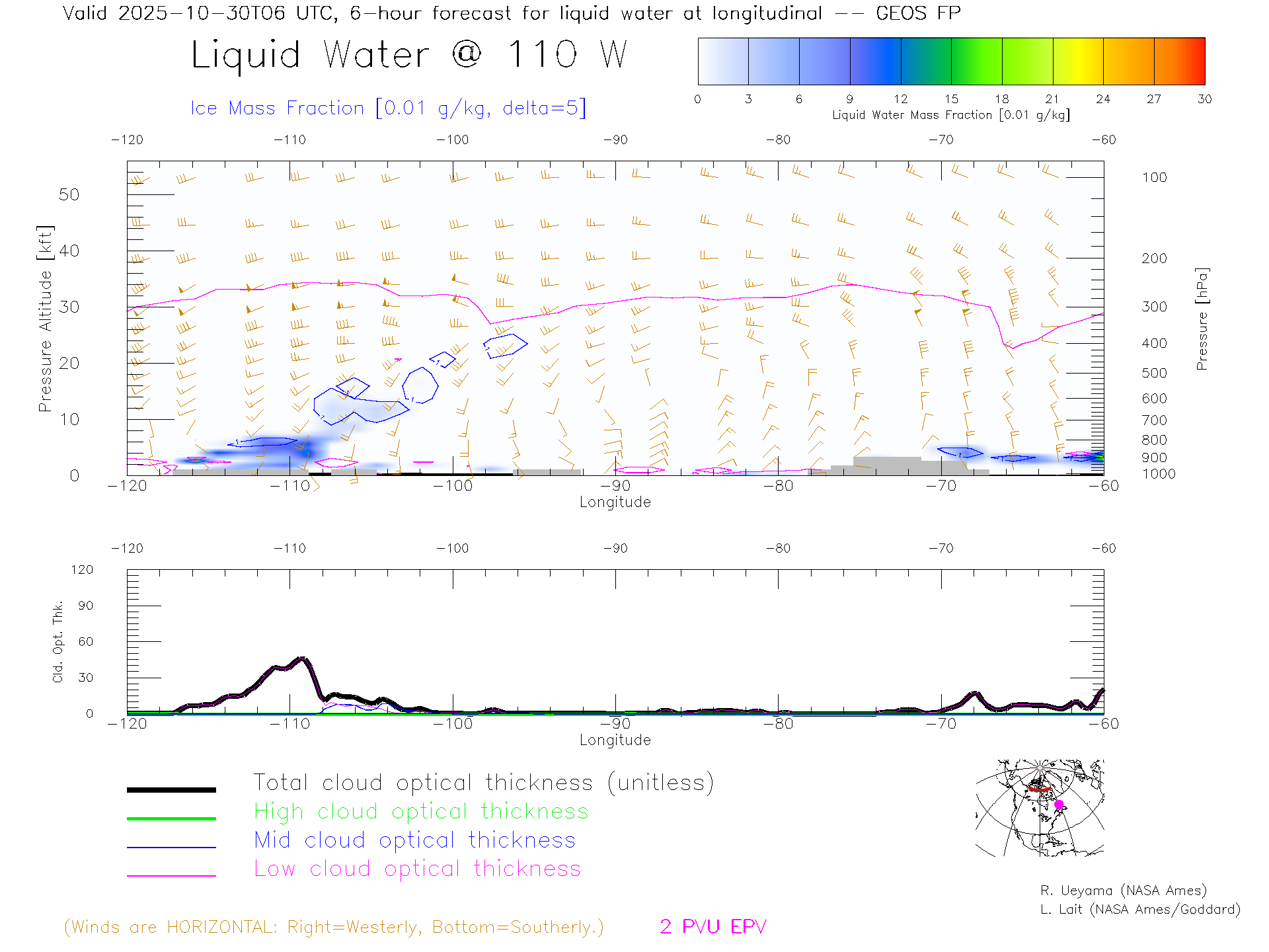 GEOS Forecast Cloud Water Content X-Section (70 N)