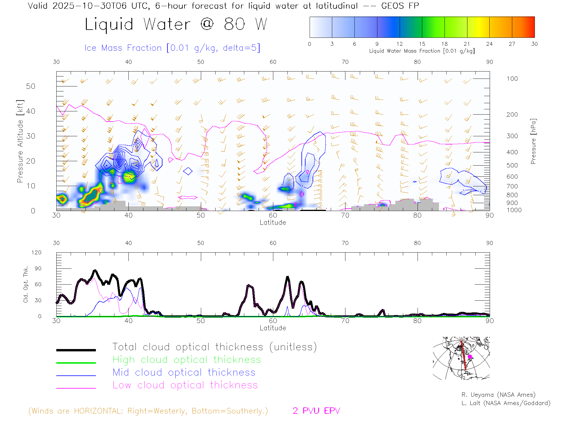 GEOS Forecast Cloud Water Content X-Section (80 W)