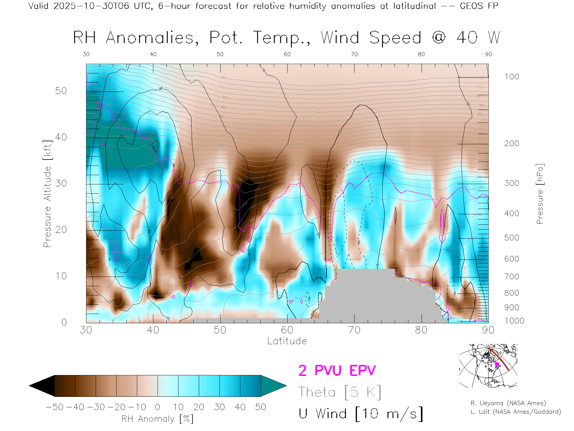 GEOS Forecast Rel. Hum. X-Section (40 W)