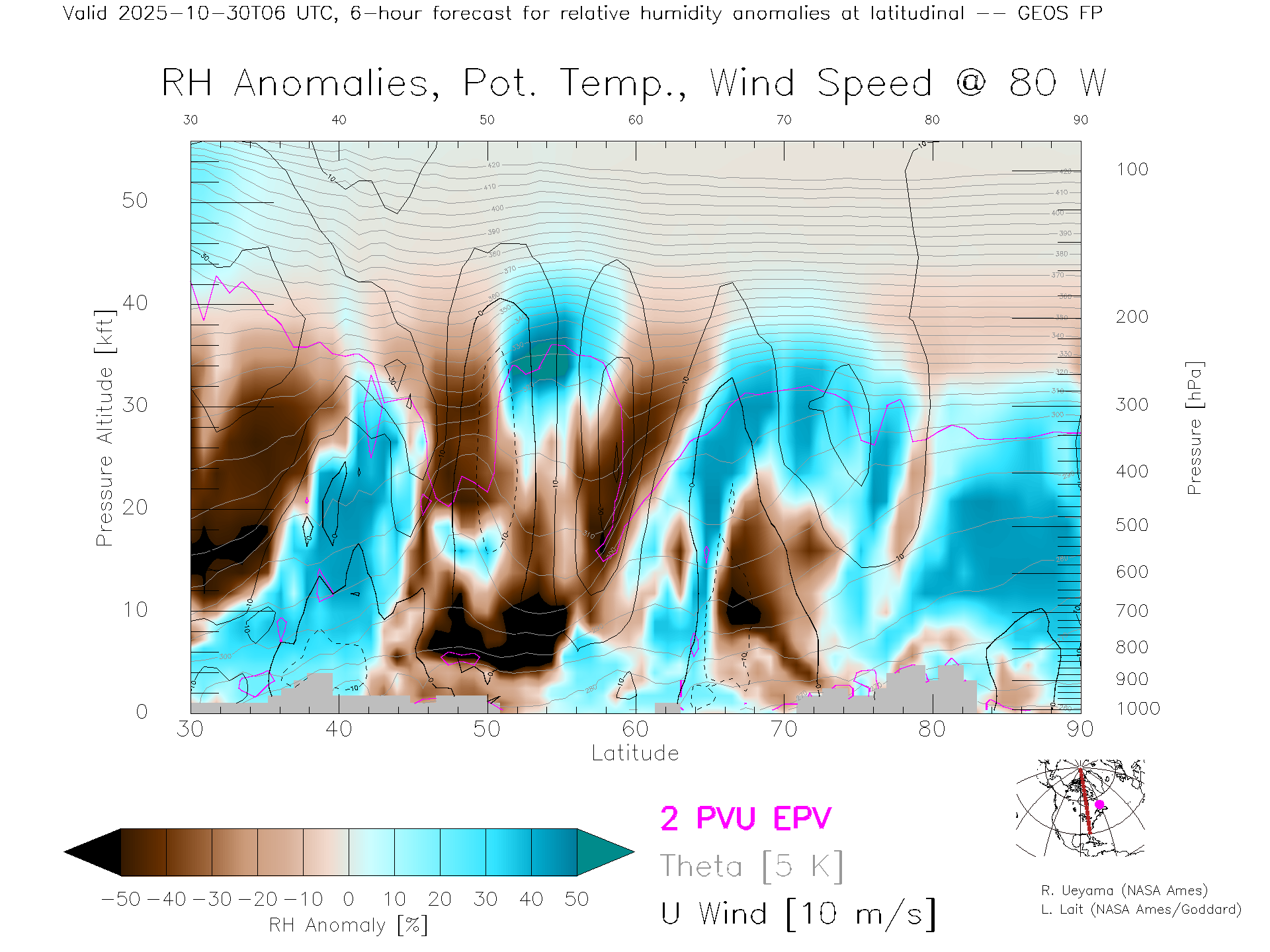 GEOS Forecast Rel. Hum. X-Section (80 W)