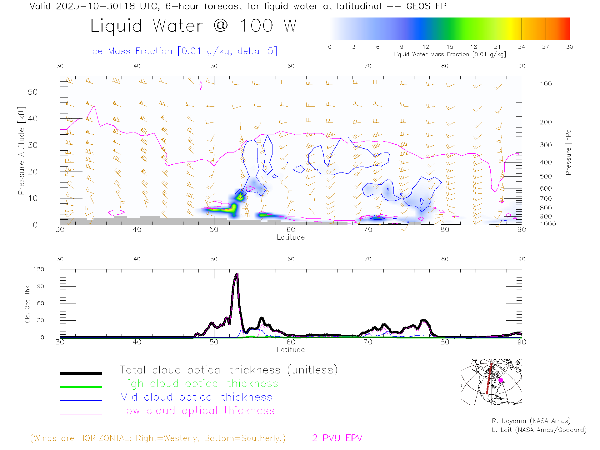 GEOS Forecast Cloud Water Content X-Section (100 W)