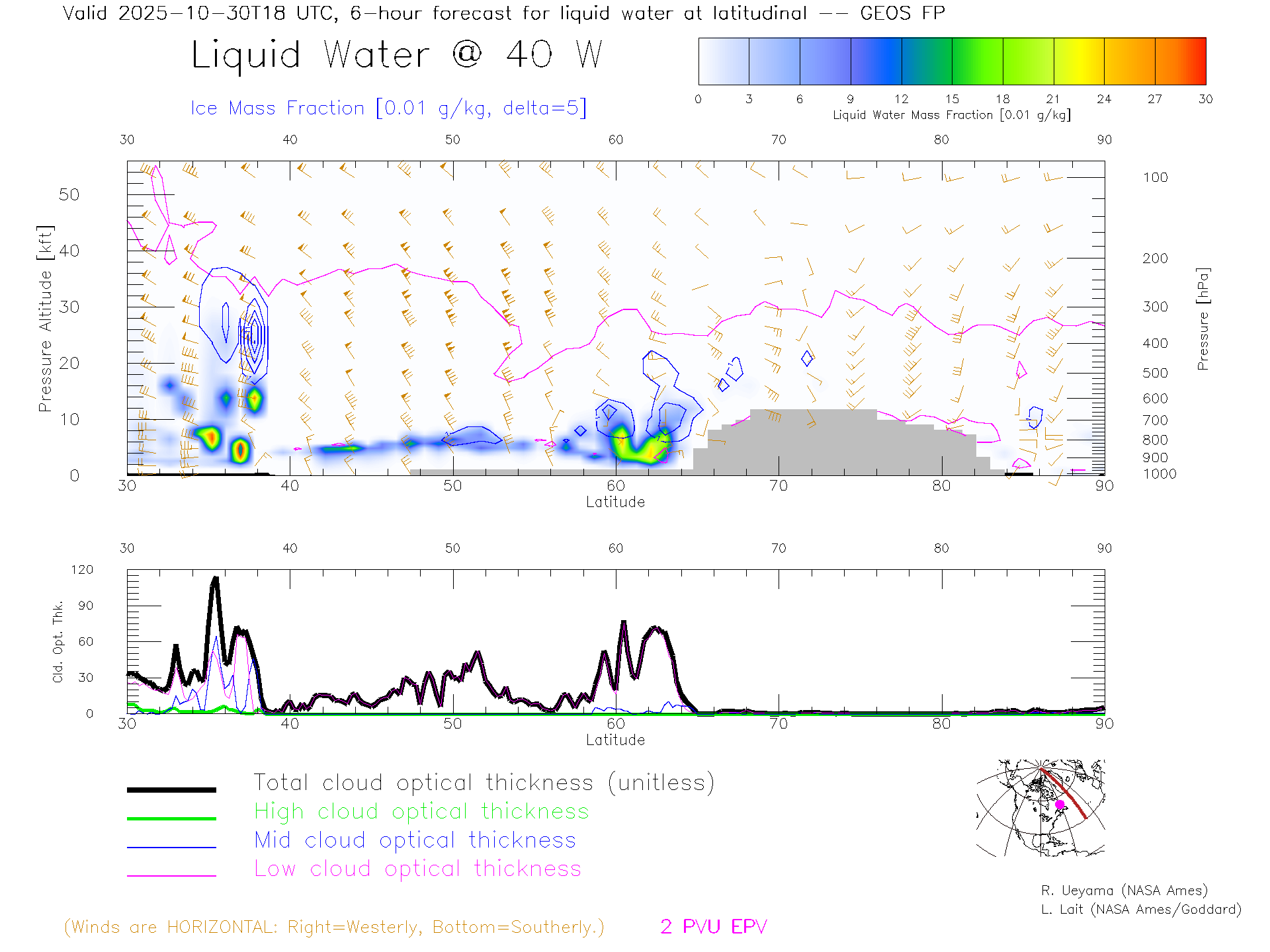 GEOS Forecast Cloud Water Content X-Section (40 W)