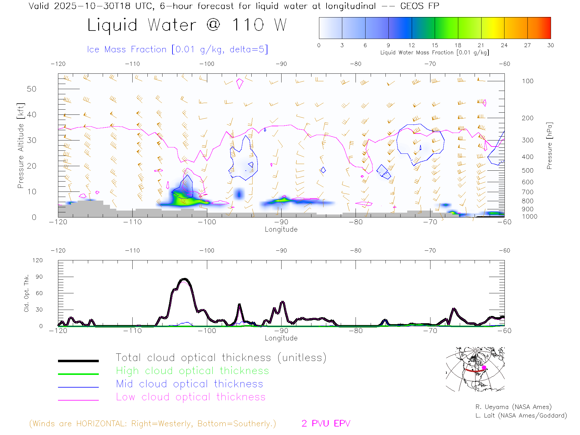 GEOS Forecast Cloud Water Content X-Section (50 N)