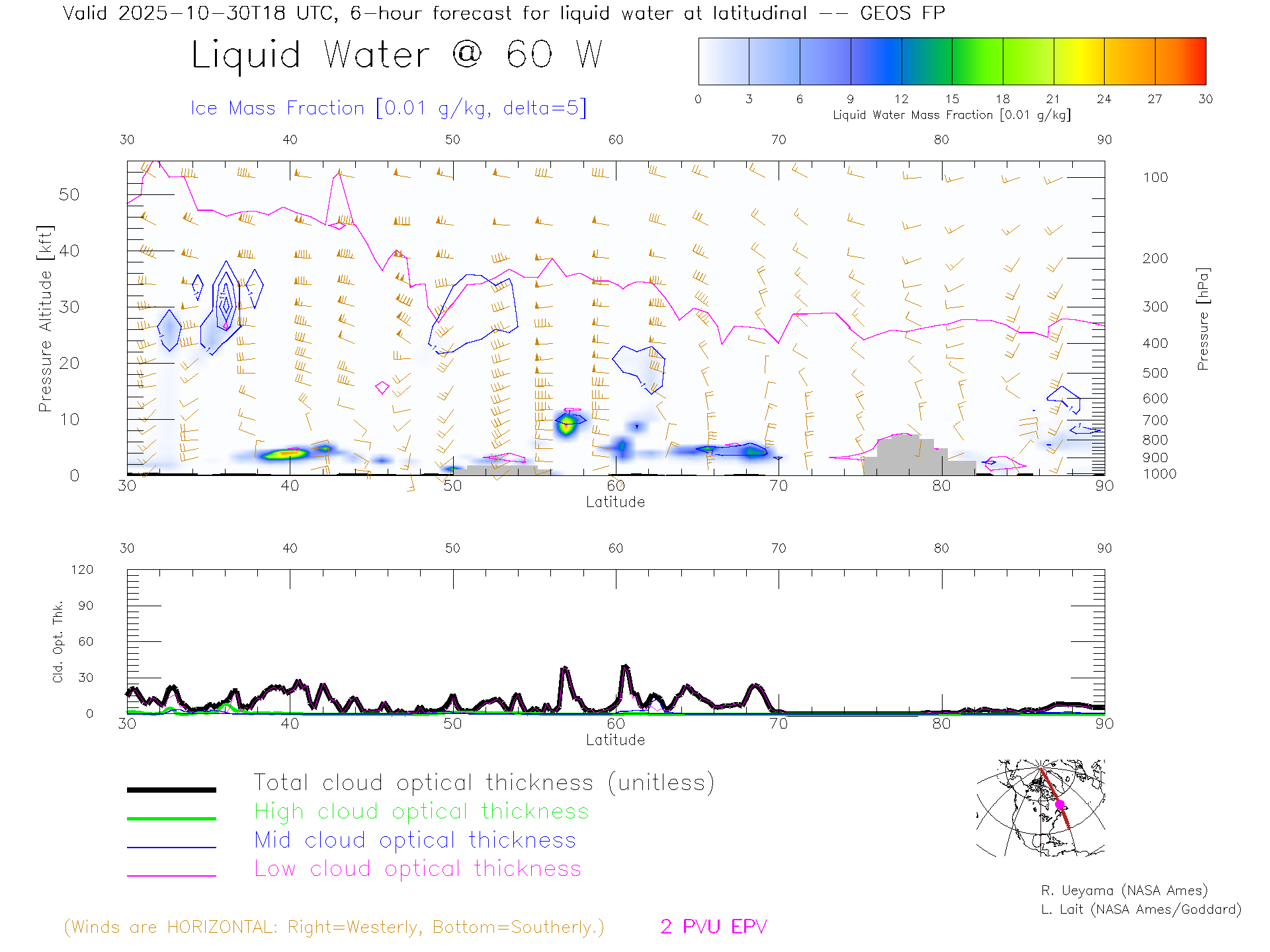 GEOS Forecast Cloud Water Content X-Section (60 W)
