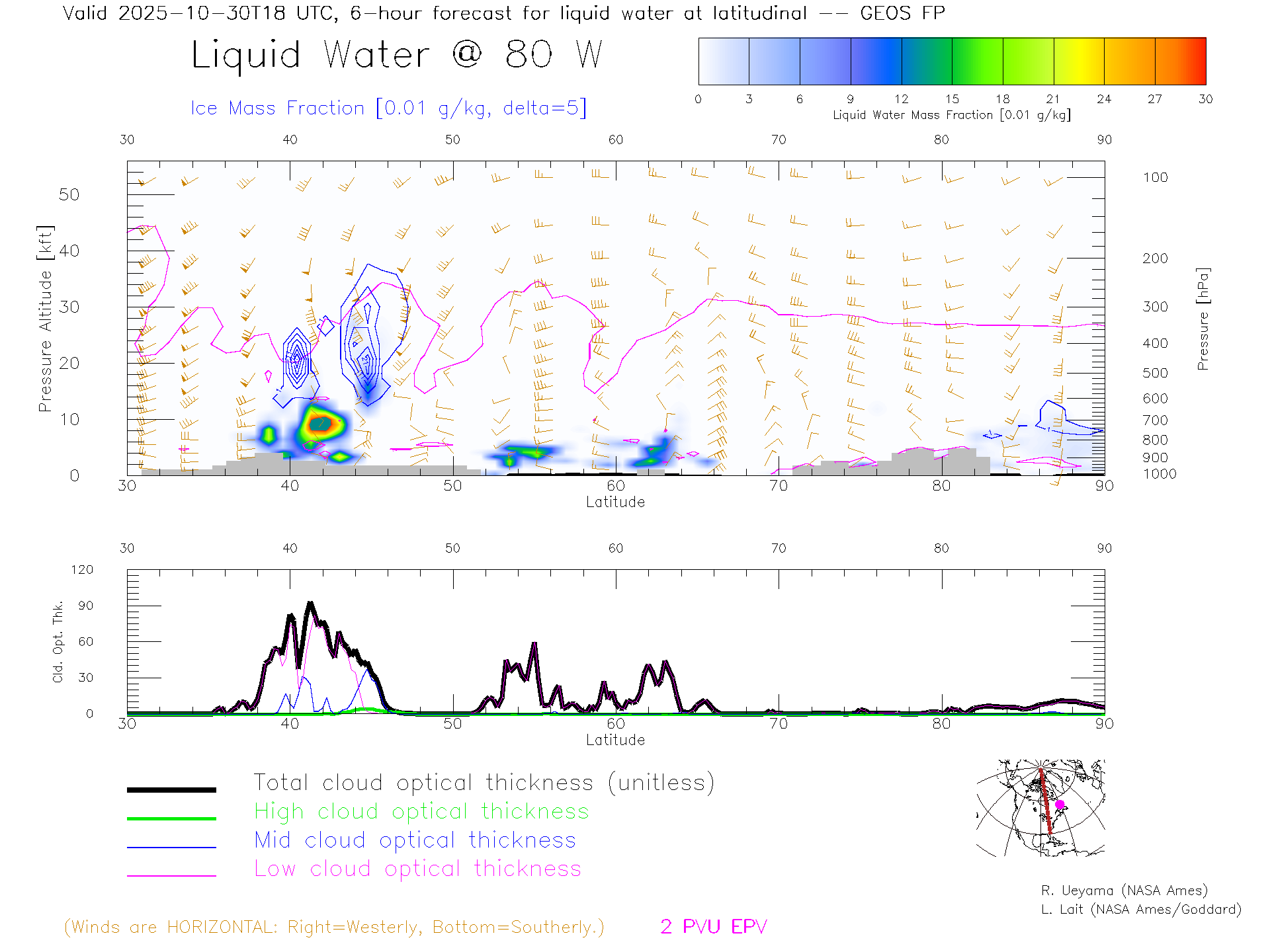 GEOS Forecast Cloud Water Content X-Section (80 W)